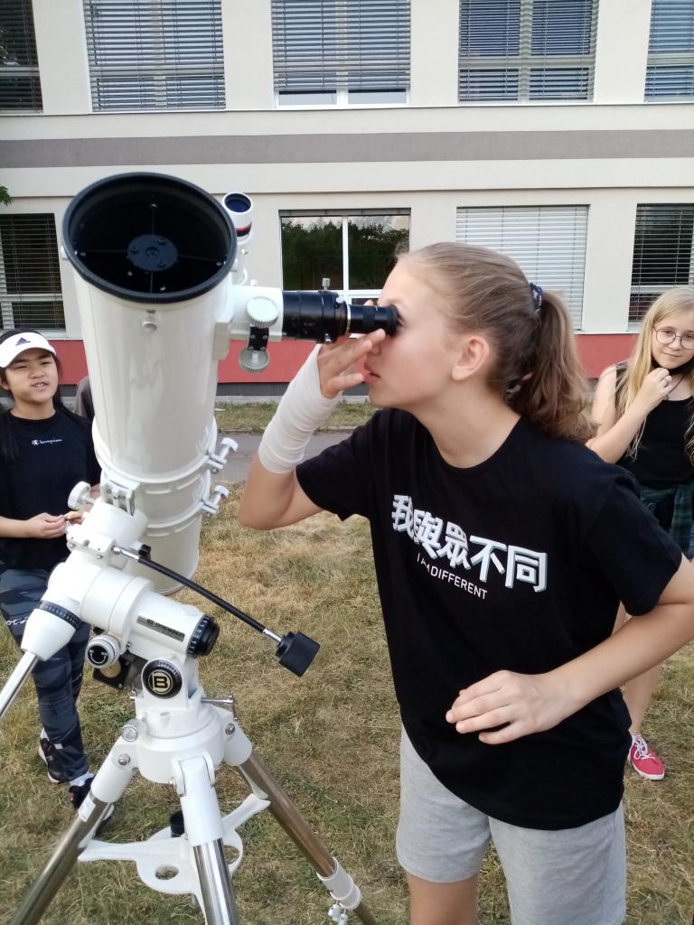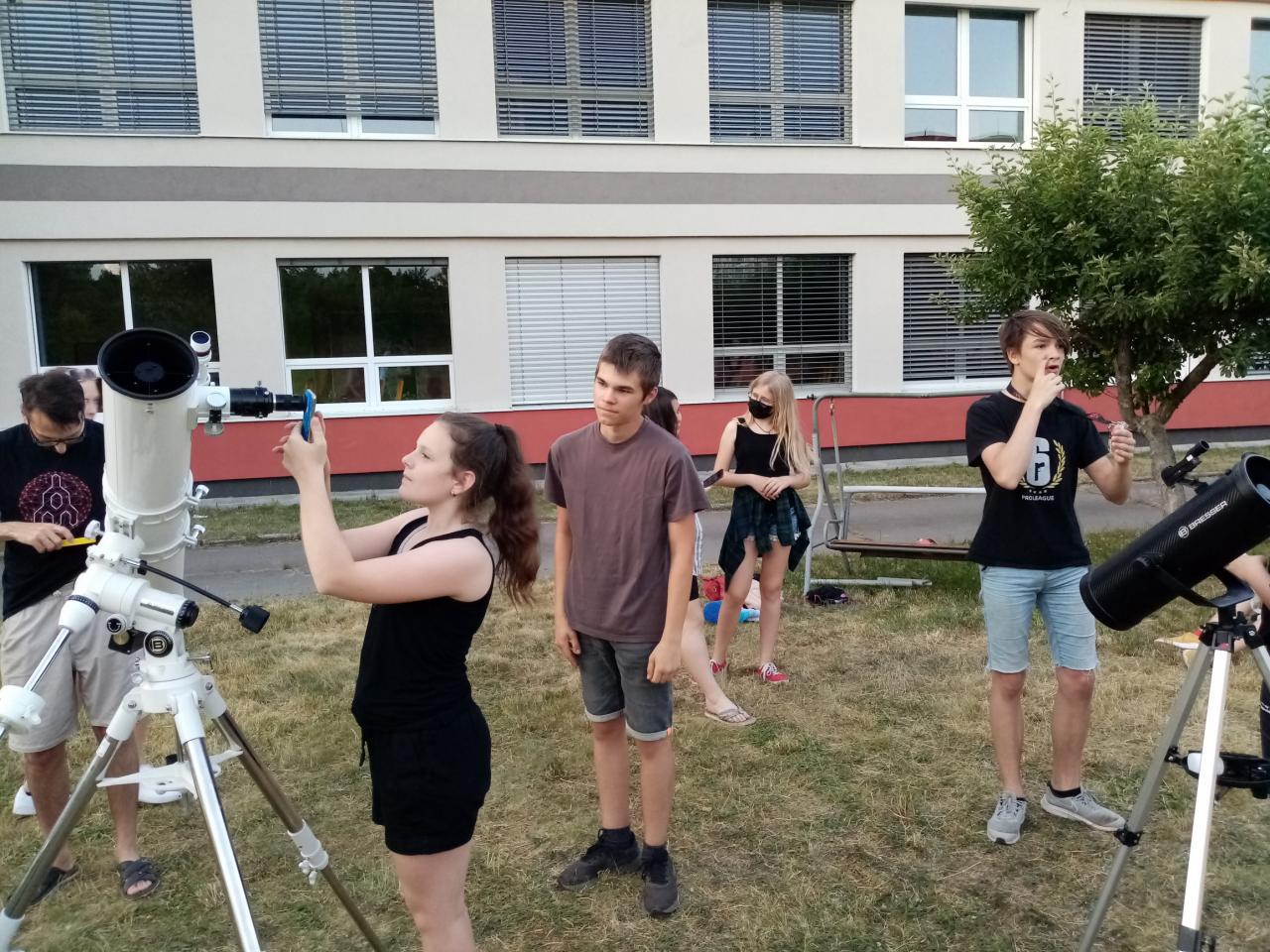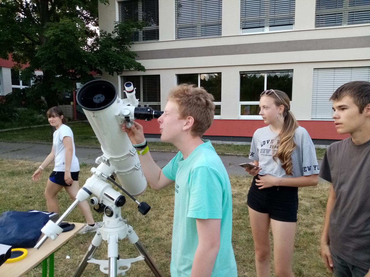 V pátek 18. 6. 2021 jsme se na zahradě školy sešli k pozorování povrchu Měsíce. K pozorování jsme využili náš hvězdářský dalekohled. Počasí nám přálo. Měsíc není dobré pozorovat při úplňku, moc bychom toho neviděli, zvolili jsme tedy termín před úplňkem.