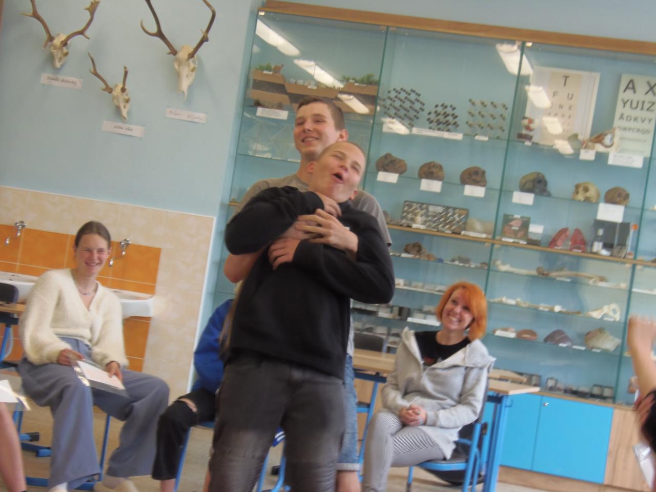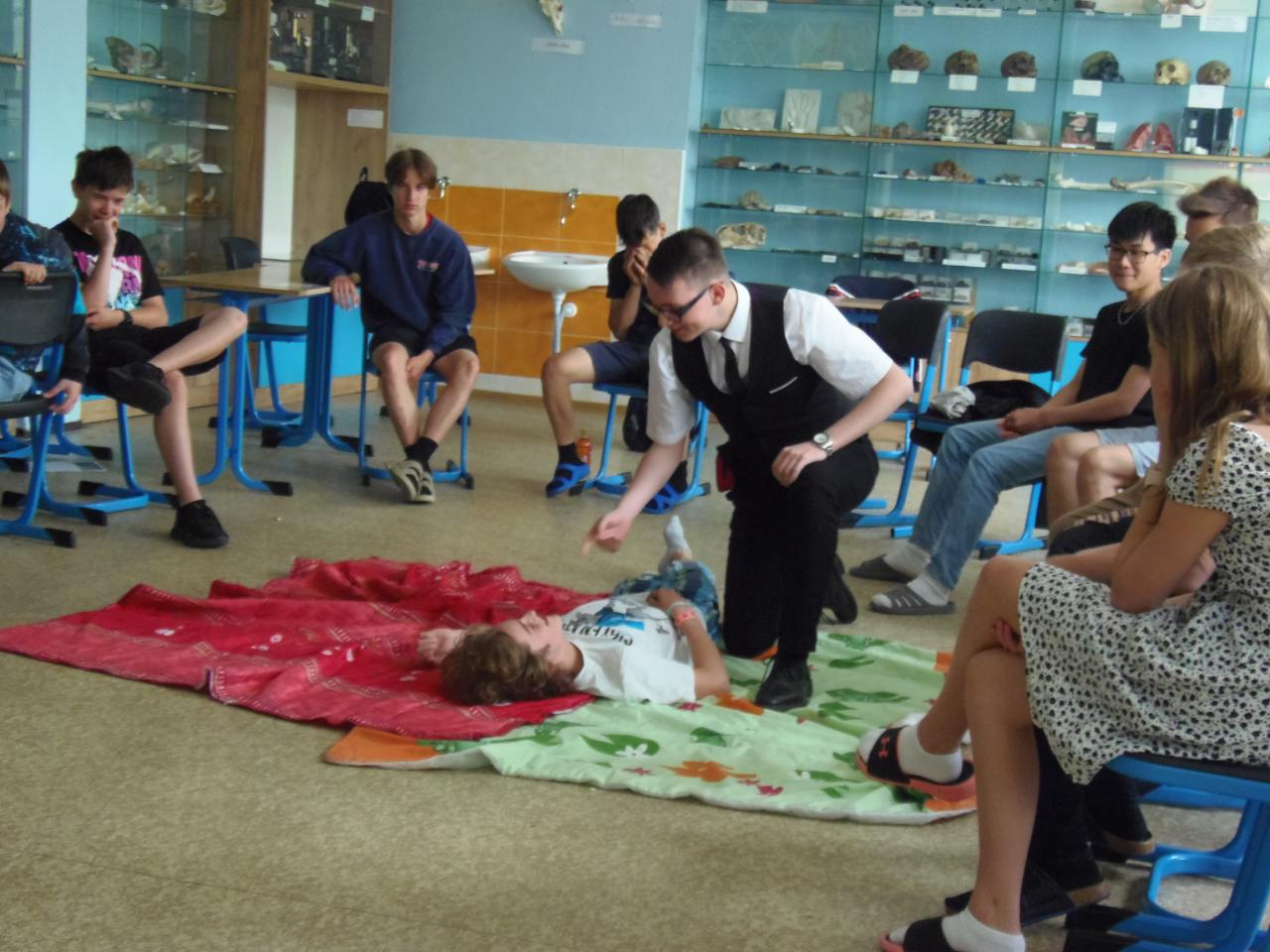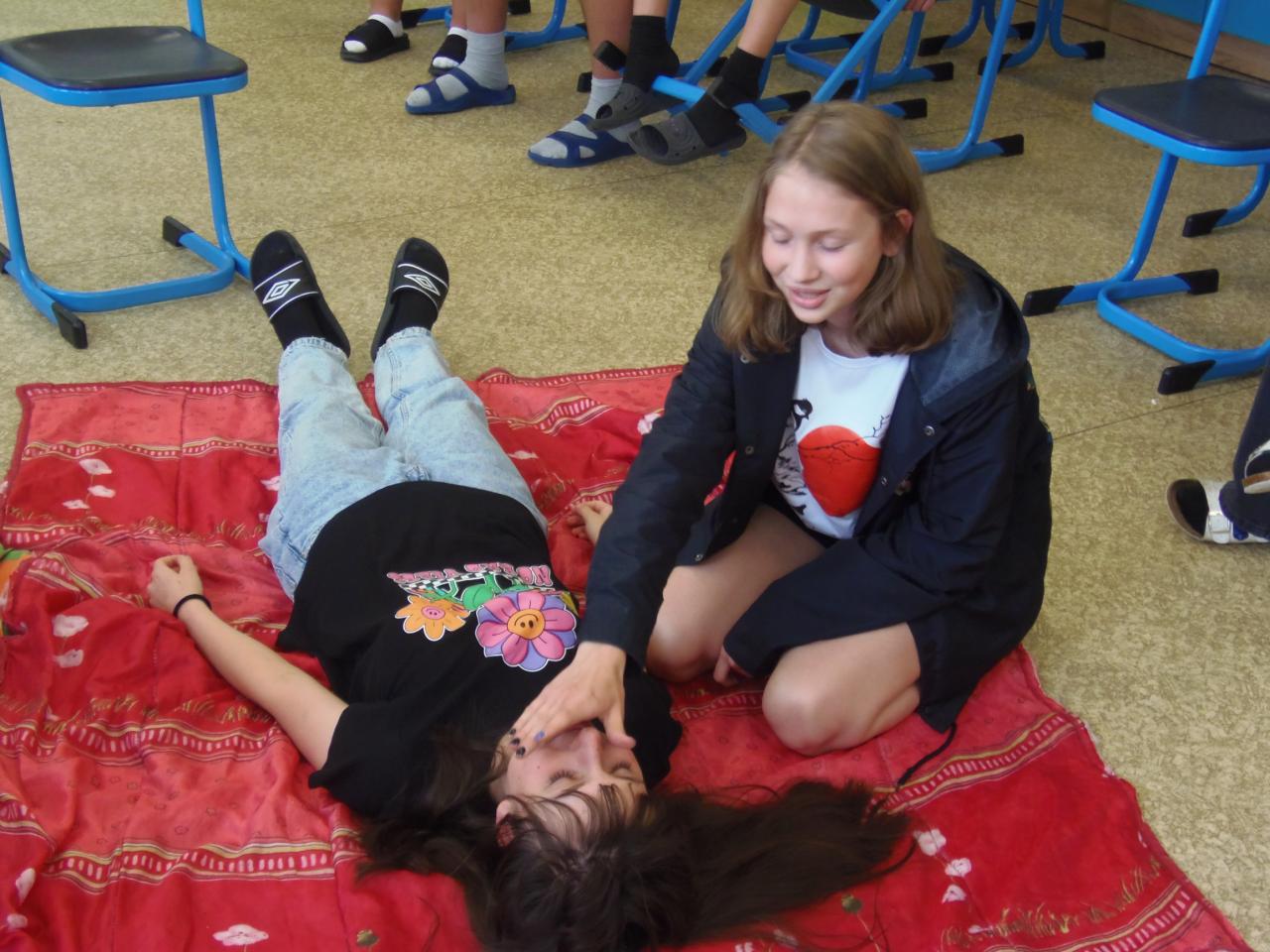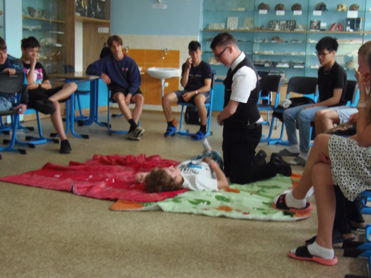 V biologii 8. ročníku se velmi výrazně zaměřujeme na první pomoc při různých úrazech a nehodách. Abychom neproplouvali jen teorií, zkoušíme to i prakticky, správně ošetřujeme zranění, jako figuranti nám slouží spolužáci