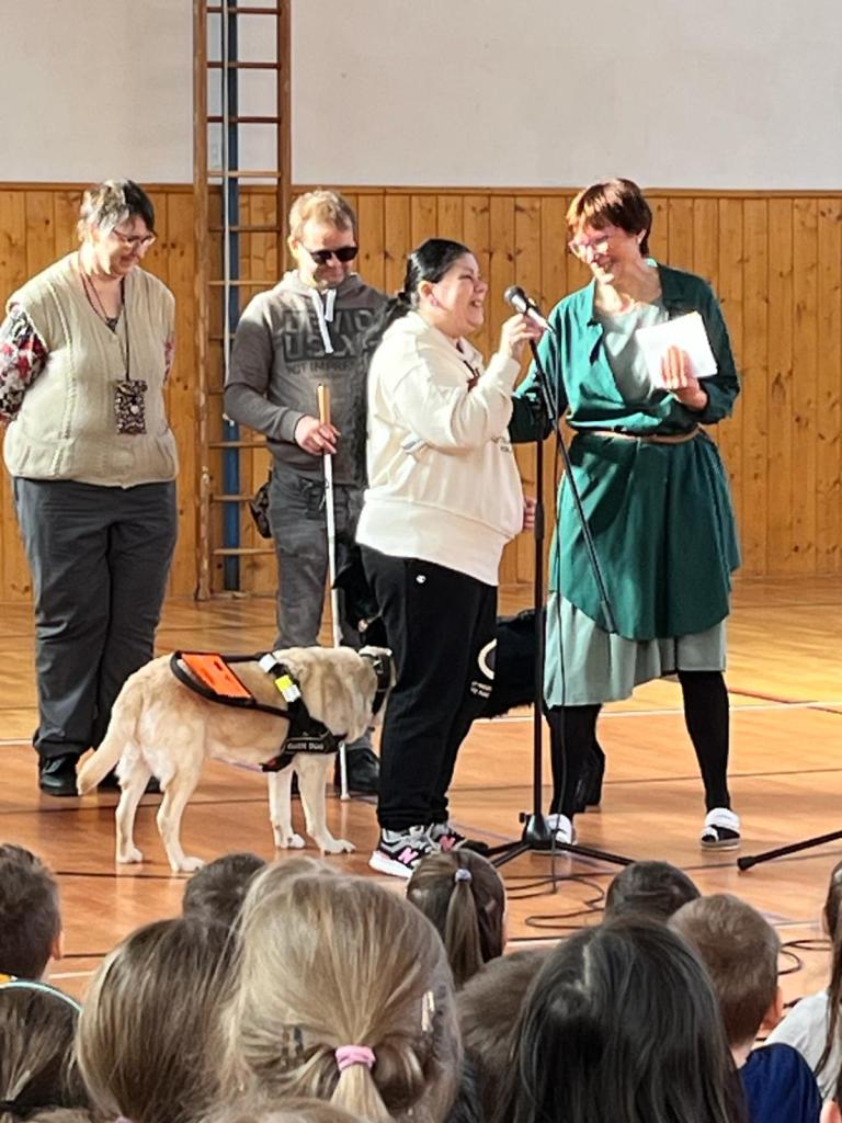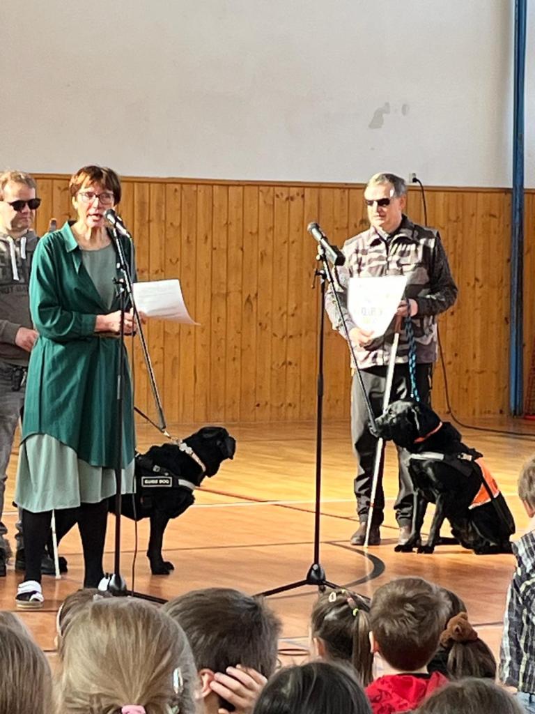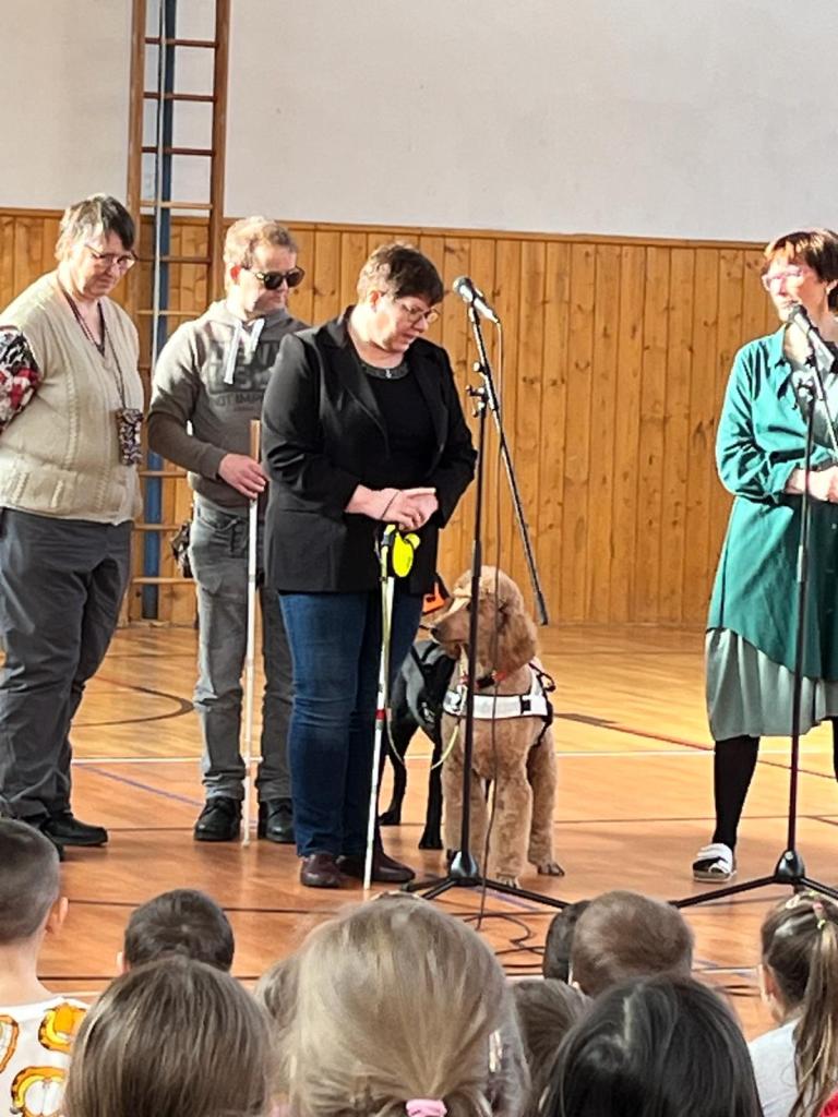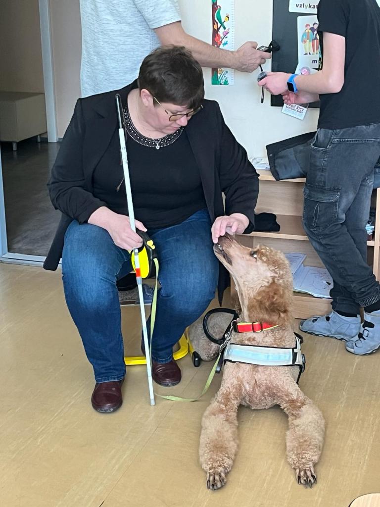 Paní Mečířová přijela se svým vodicím pudlem ze Žatce a paní Janečková z Loun zazpívala za přítomnosti své labradorky Minky pohádkové písničky i dětmi vyžádanou lidovku Okolo Frýdku cestička.