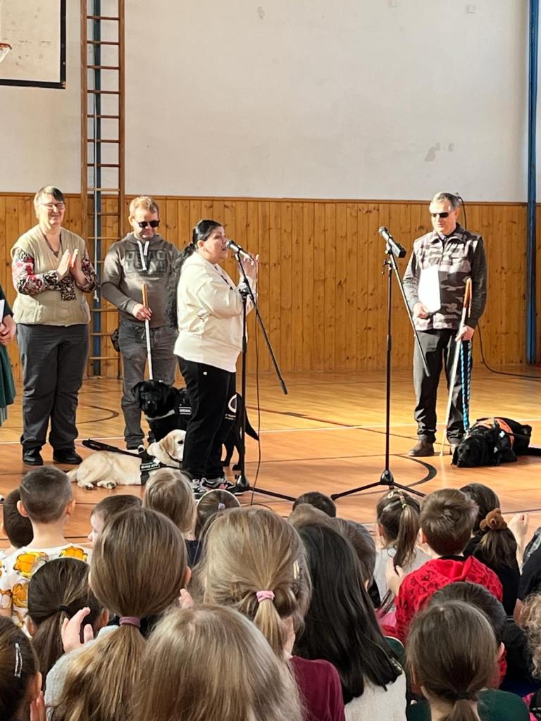 21. února navštívili naši školu zástupci KDVP se svými psími pomocníky, aby převzali z rukou dětí 1. stupně a jejich učitelů pomyslný šek na částku 20 511 Kč, která poputuje na jejich klubový účet.