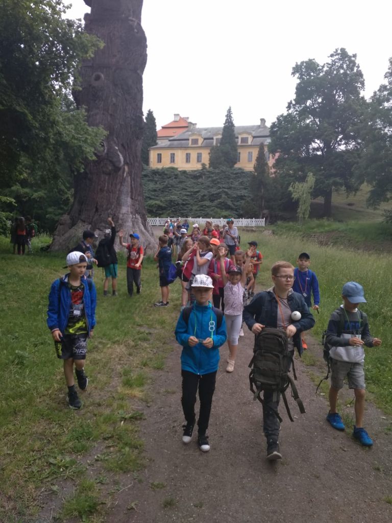 Na zámku Krásný Dvůr je všechno vzhůru nohama! Očekává se příjezd císaře a jeho drahé choti a všichni mají plné ruce práce. Je třeba opravit obrazovou galerii rodu Černínů, nechat namalovat vedutu pro císaře, zkontrolovat bezpečnost cest v parku, vyrobit parfém pro císařovnu a nacvičit koncert pro vzácnou návštěvu. A naši žáci ze 3.A,B velmi ochotně se všemi přípravami pomohli.Zapojili všechny smysly a poznávali tak park a jeho koncepci.