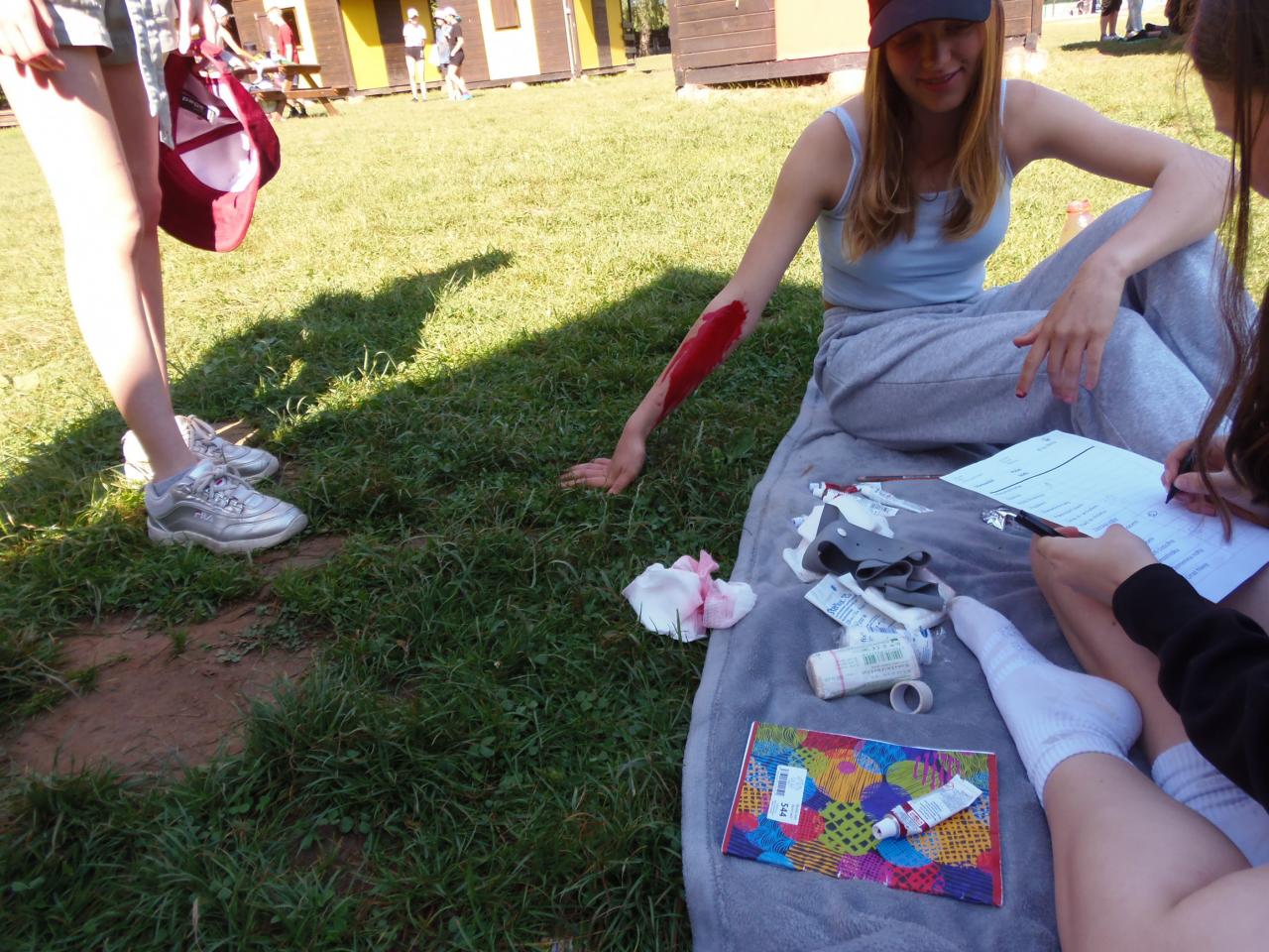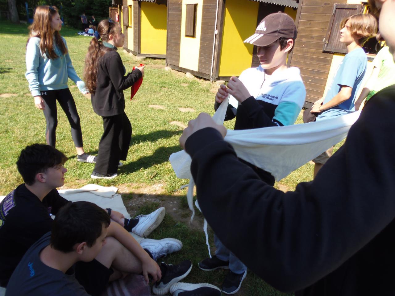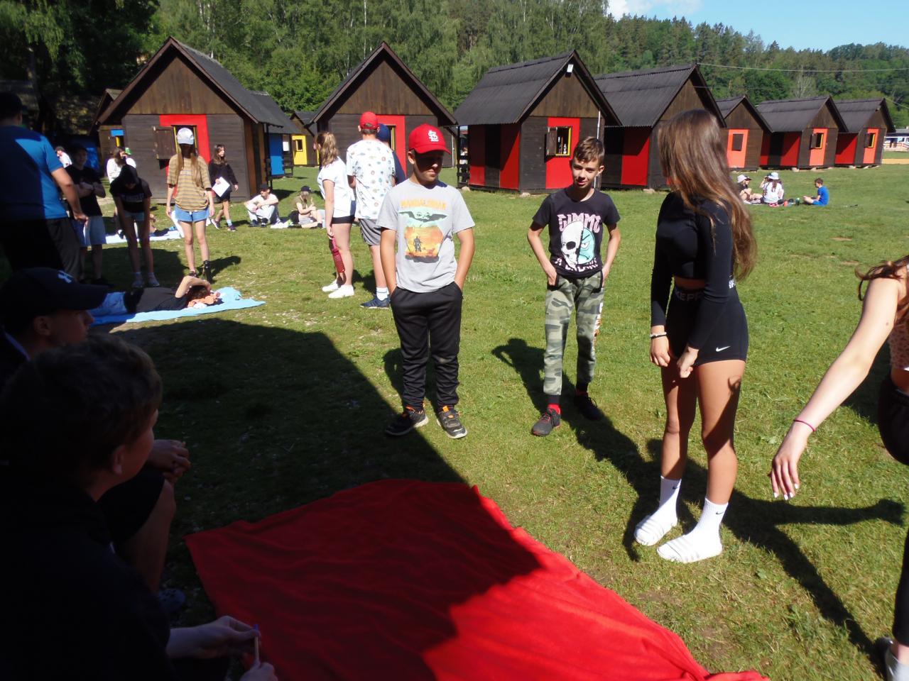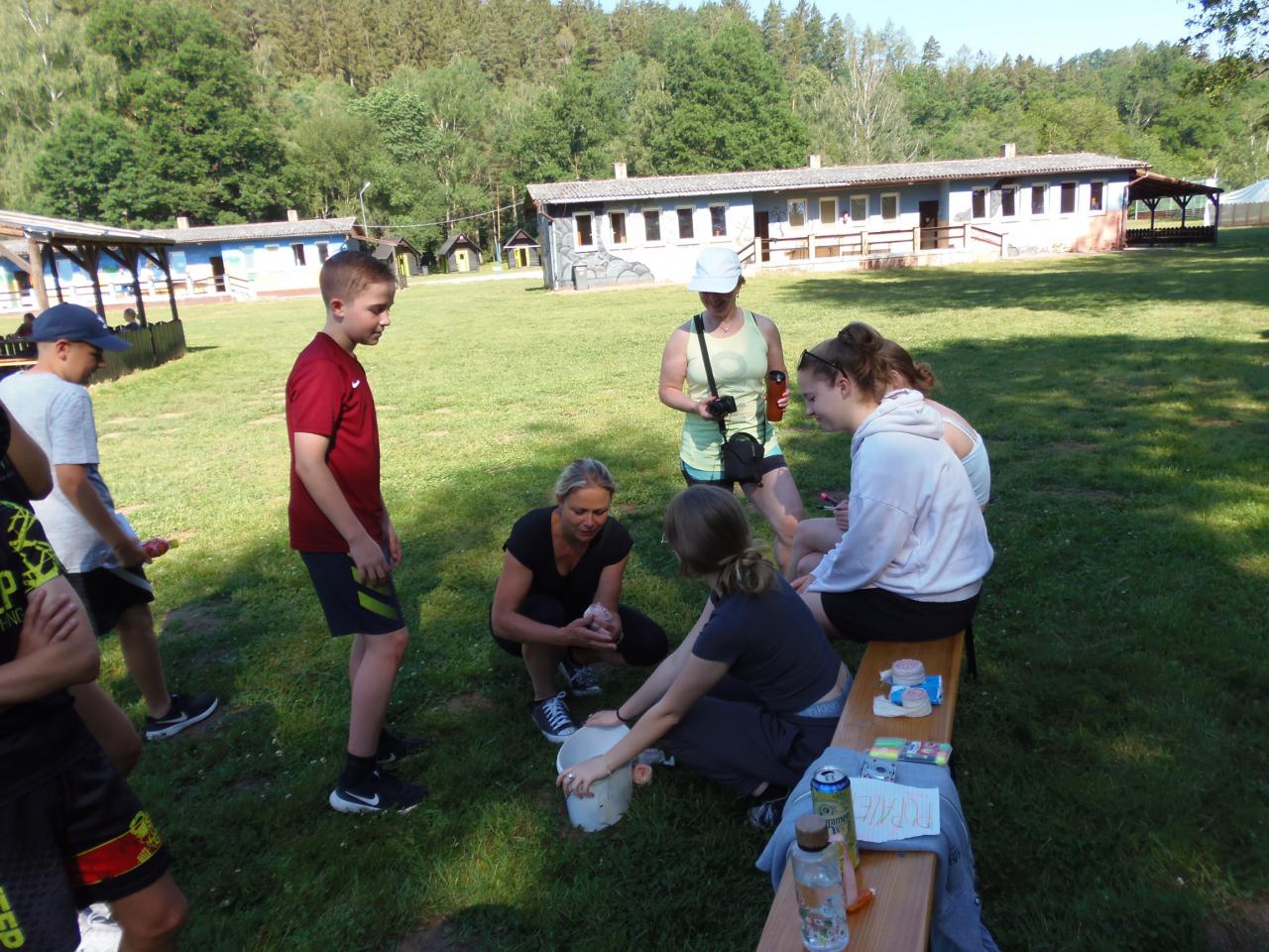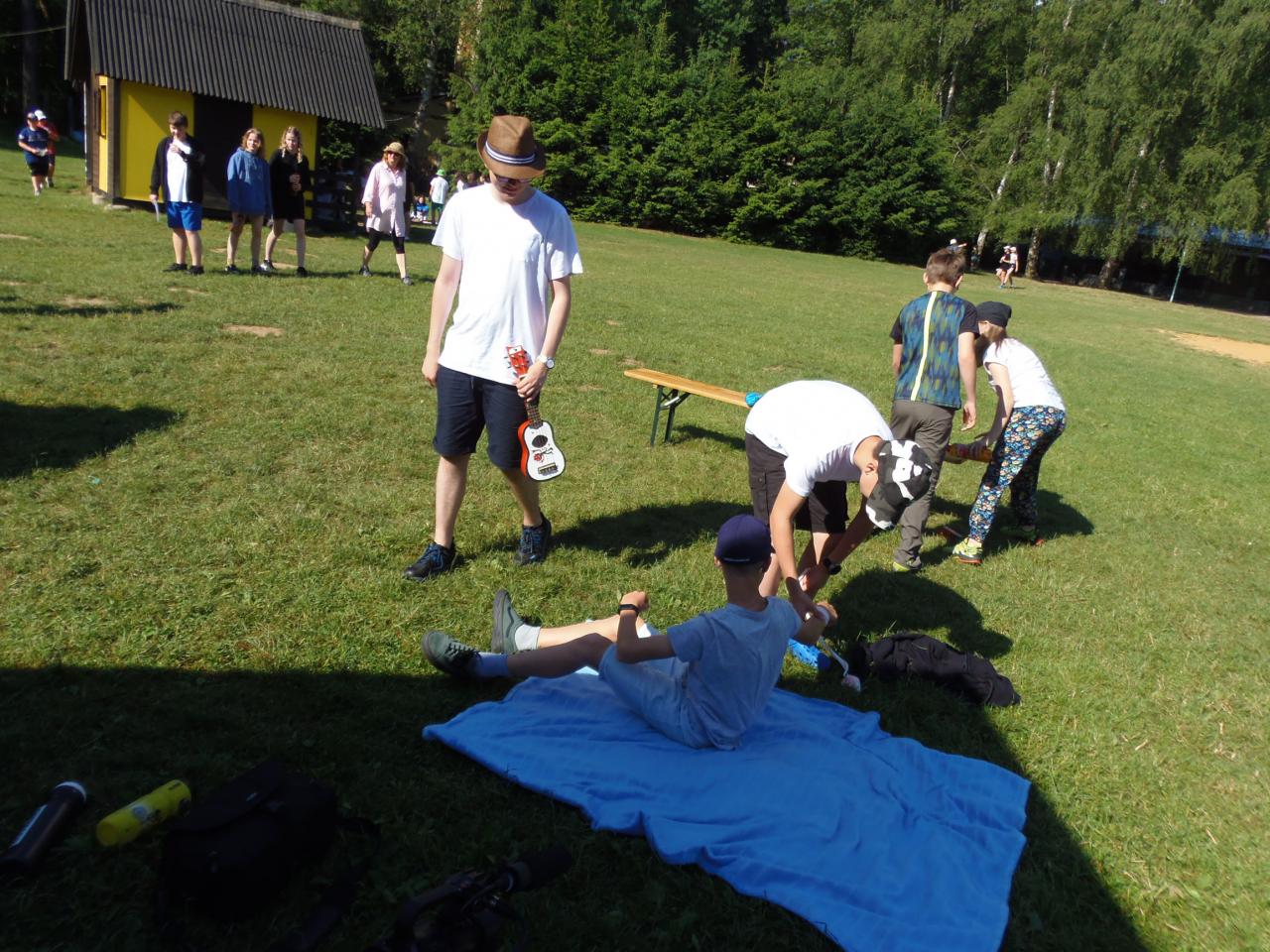 V sobotu 11.6. se konal Den první pomoci. Osmáci a deváťáci si pro mladší spolužáky připravili 30 stanovišť s různými druhy poranění, kde vysvětlovali, jak ke zranění může dojít, jak mu předcházet, a když už k němu dojde, tak to nejdůležitější - jak zranění ošetřit. Učili své spolužáky základům první pomoci. Když všechno vysvětlili a zodpověděli na otázky skupin šesťáků a sedmáků, role se obrátily a mladší děti předvedly, co se naučily. Starší žáci je hodnotili na každém stanovišti 10 body.