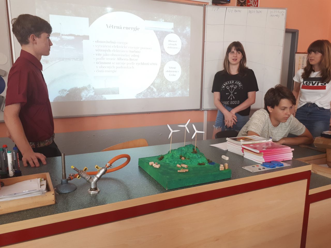 Projekt zaměřený na to, jak zajistit el. energii pro náš stát do budoucna si připravila třída 9.A. Ve skupinkách vyrobili modely jednotlivých typů elektráren, na kterých ostatním předvedli princip činnosti. Skupinky žáků porovnávaly vhodnost výstavby jednotlivých typů elektráren při zajištění energie pro náš stát do budoucností. Pro jednotlivé typy elektráren diskutovali výhody a nevýhody, finanční náklady i jak jsou elektrárny ekologické. Procvičili si vedení diskuse, hodnocení projevu ostatních a obhajobu svých názorů. Nakonec vytvořili dopis pro pana ministra s doporučením pro budoucnost.