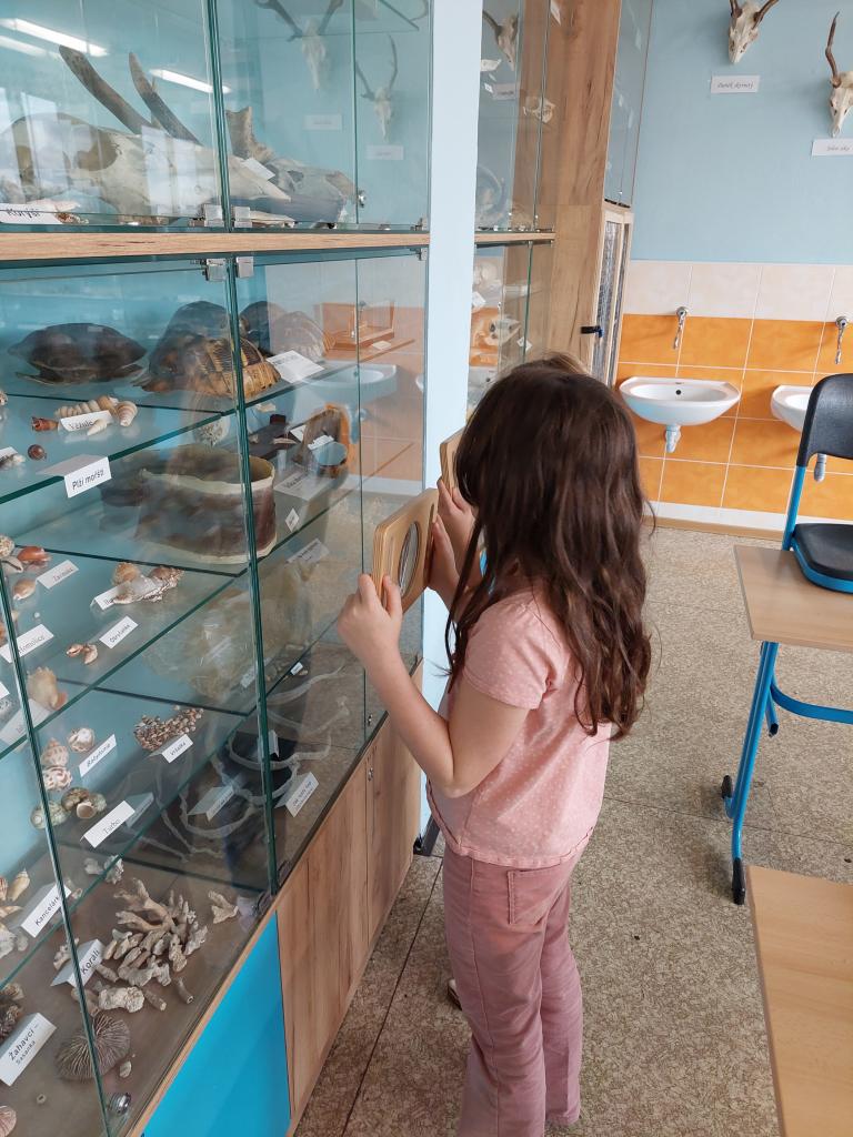 Dnes jsme se s některými dětmi ze školní družiny věnovali pozorování okolí pomocí zvětšovacích lup. Práce to byla velmi zajímavá. Okolní svět se nám zvětšil a my poprvé uviděli i detaily, které bychom normálně přehlédli. Navštívili jsme také školní učebnu biologie, kde děti velmi zaujaly vystavené exponáty. Děkujeme za půjčení lup paní učitelce Průšové a těšíme se, až půjdeme pozorovat jarní přírodu.