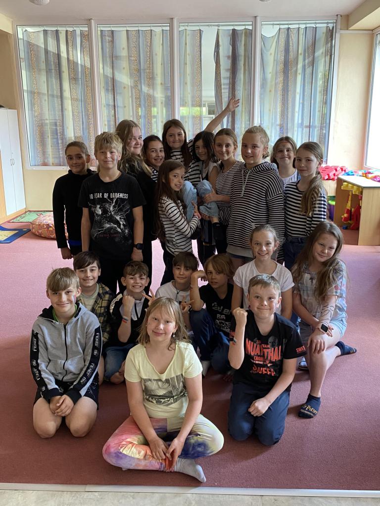 7.6. dorazili žáci 4.B do školy v proužkovaném oblečení. Ptáte se proč? Chtěli tak vyjádřit solidaritu a podporu svojí spolužačce Elišce, která se narodila s rozštěpem patra.