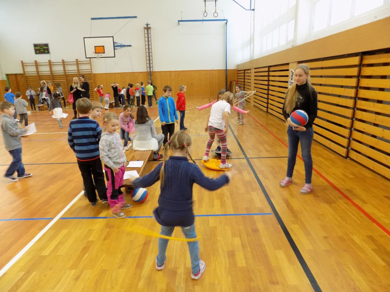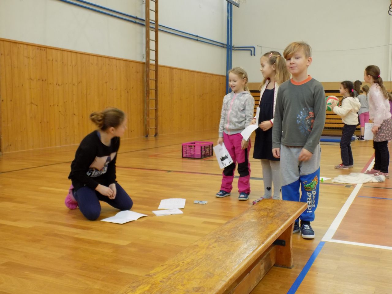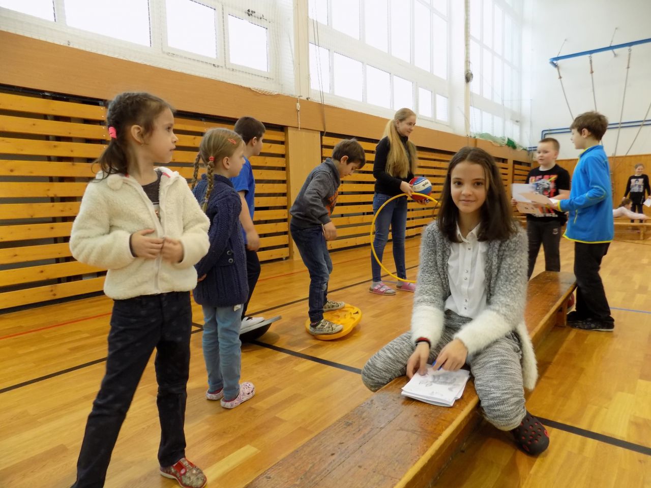 Tento den byl výjimečný i tím, že paní učitelky připravily v tělocvičně pro děti zábavné hry. S organizací pomohly dívky ze třídy 5. A.