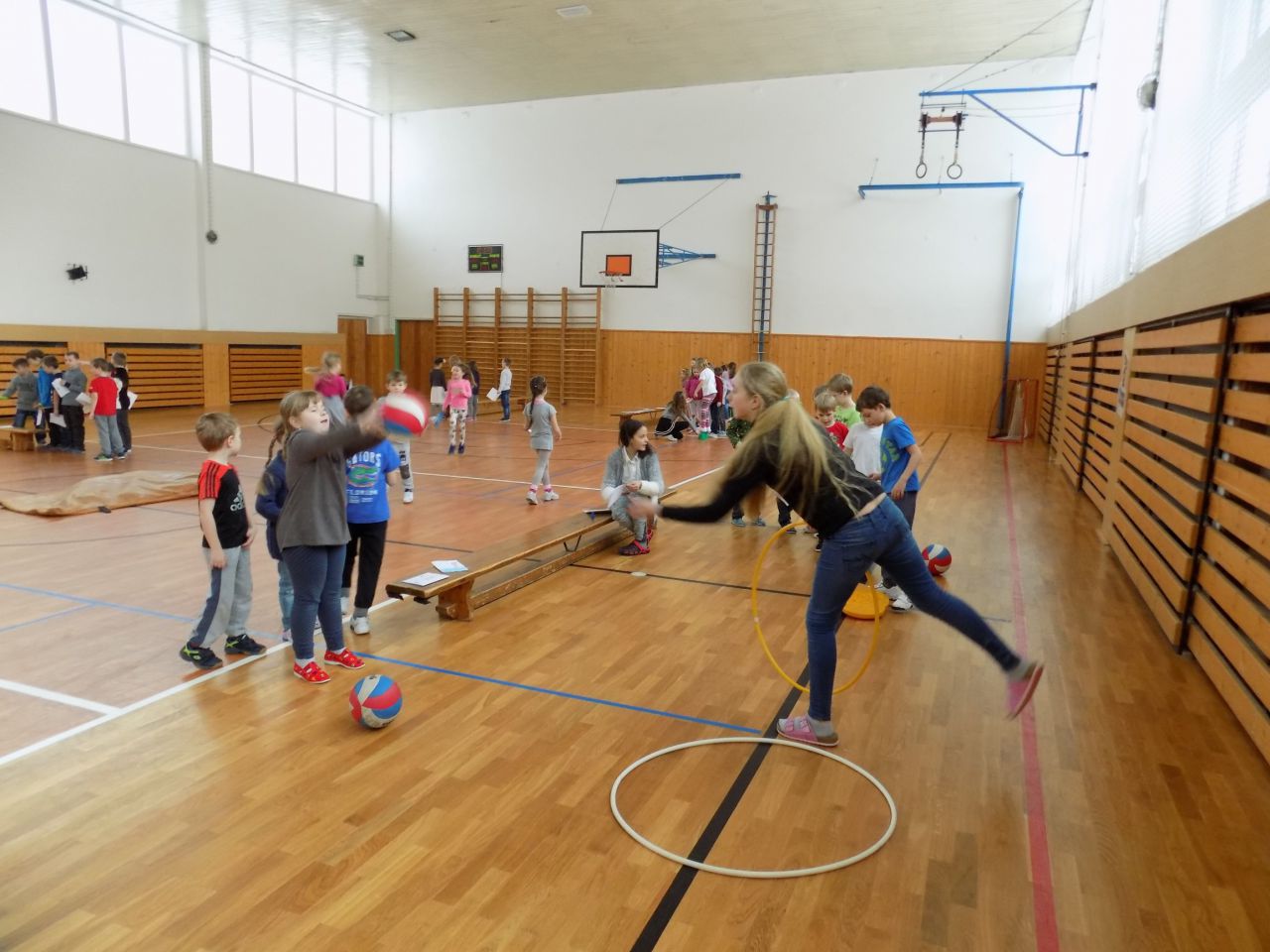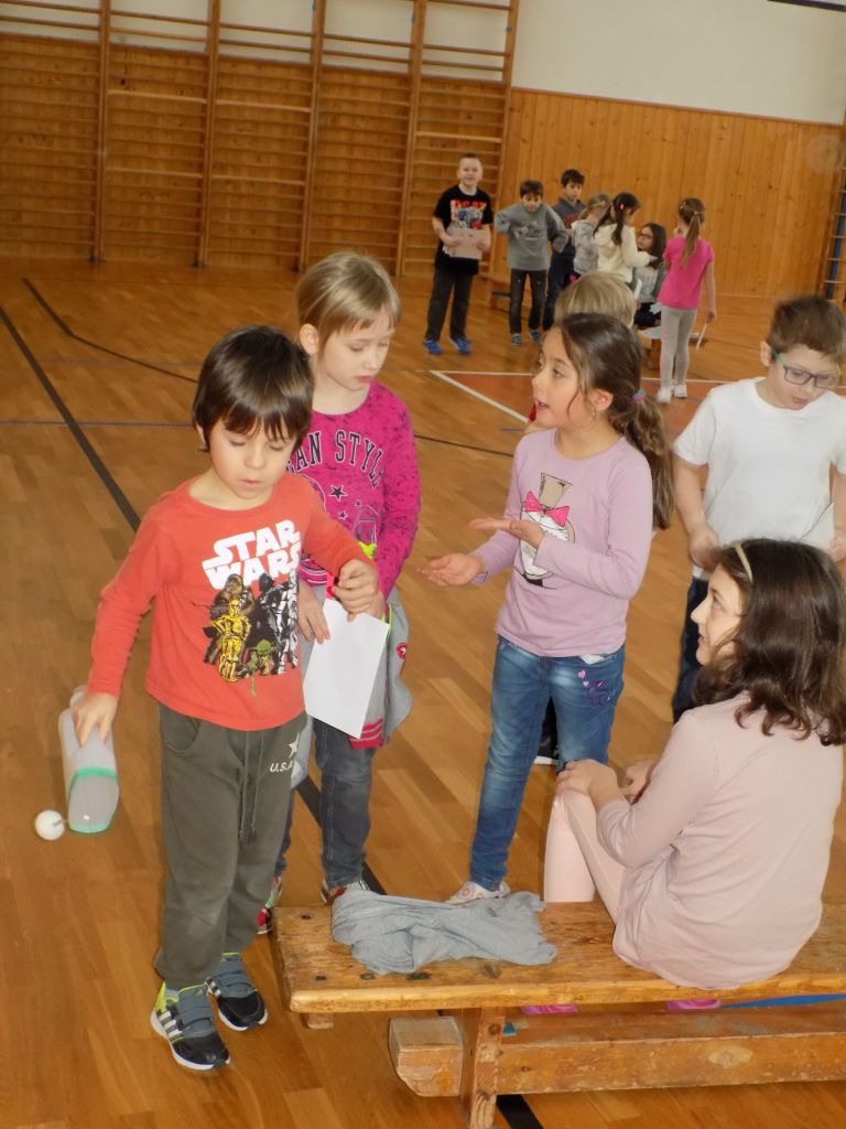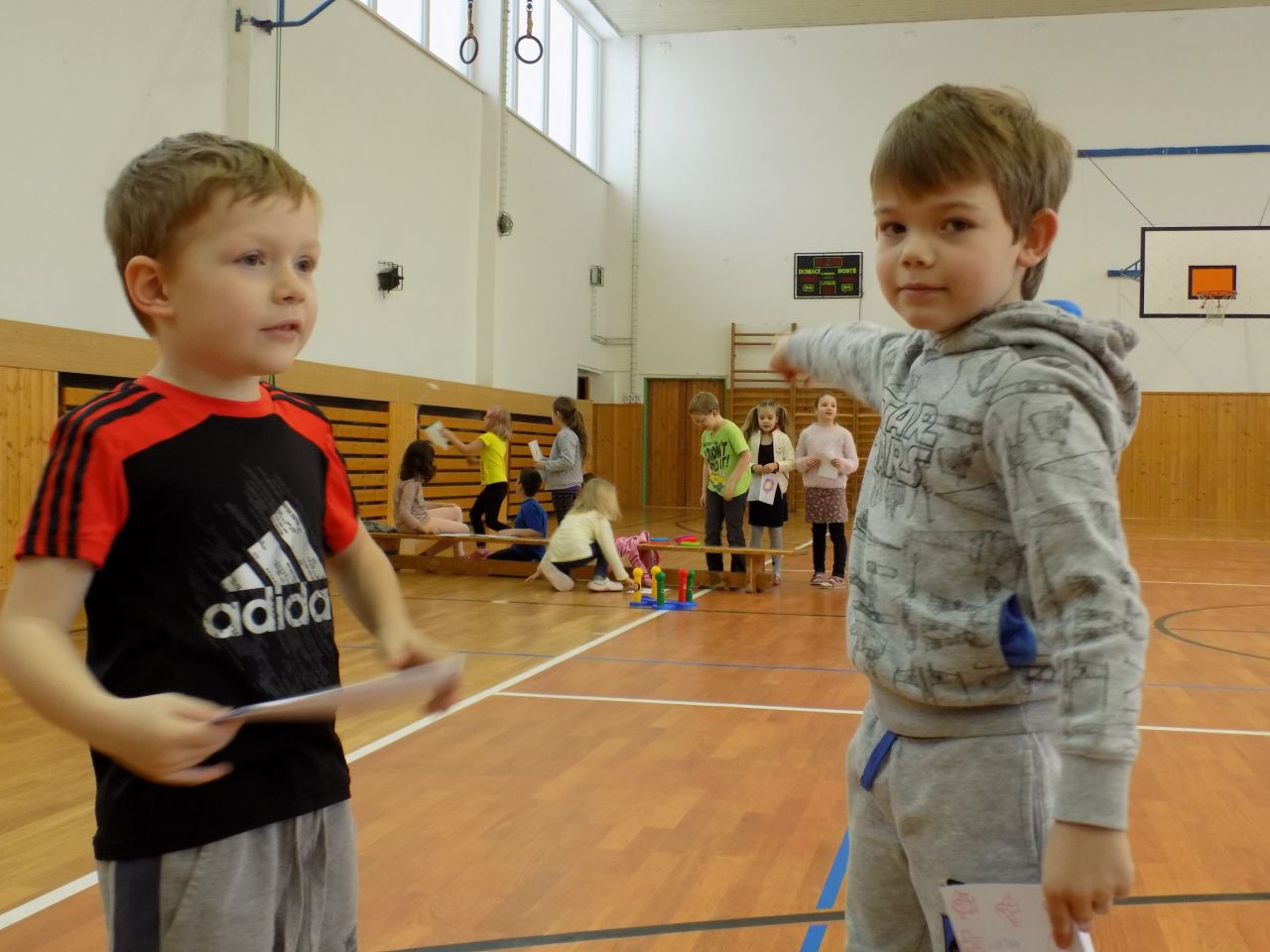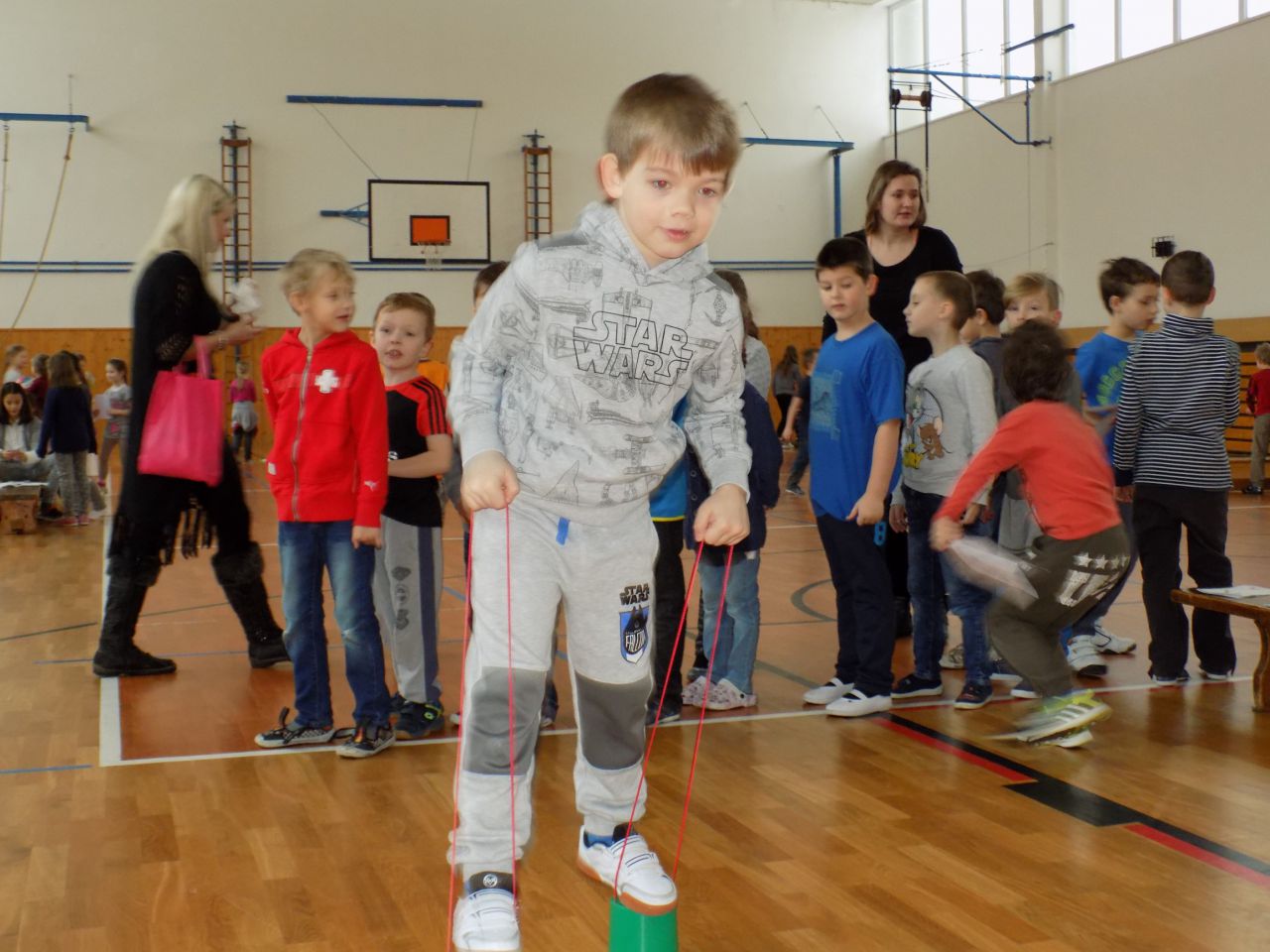 Tento den byl výjimečný i tím, že paní učitelky připravily v tělocvičně pro děti zábavné hry. S organizací pomohly dívky ze třídy 5. A.