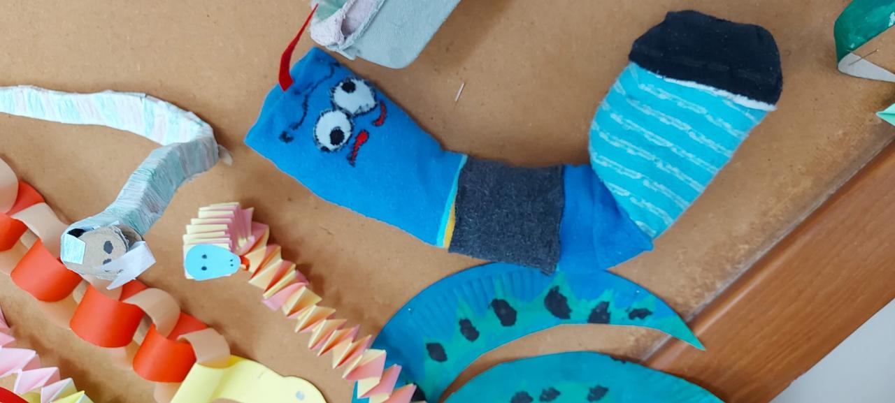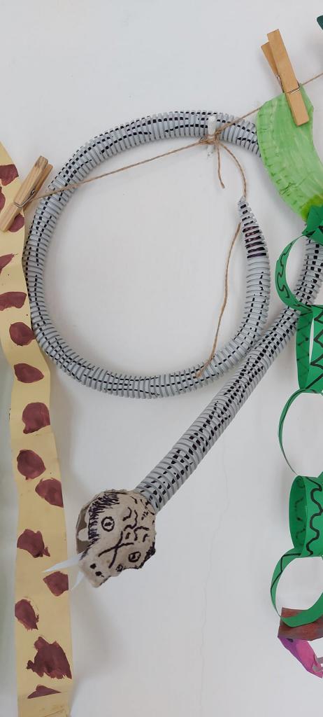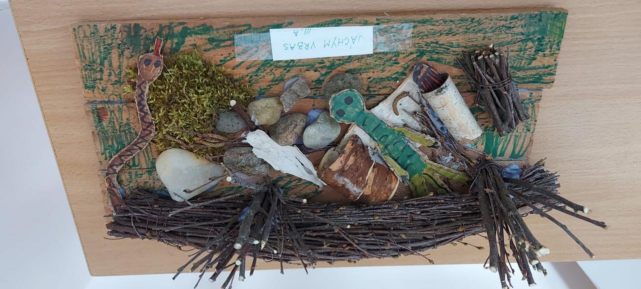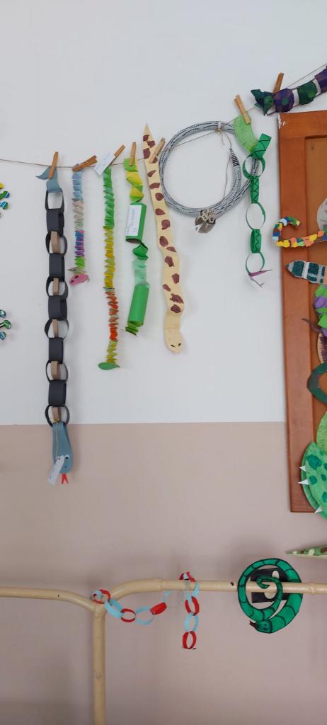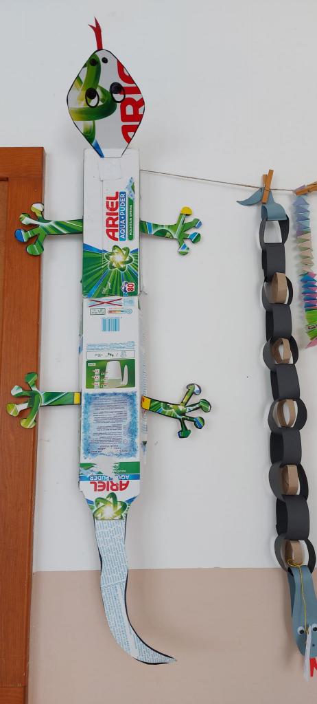 Den Země 22. dubna a následné datum 24. dubna, kdy podle lidové pranostiky „Na svatého Jiří vylézají hadi a štíři“, nás přivedly k tvůrčí práci, abychom výrobou různých ještěrů a hadů z recyklovaných materiálů přivolali teplejší dny a nalákali jsme sluníčko i k nám do školy. Den Země je pro nás významným svátkem, podporujeme ochranu životného prostředí a snažíme se i o propagaci této ochrany způsoby, na které jako děti stačíme, třeba prací s recyklovanými materiály.