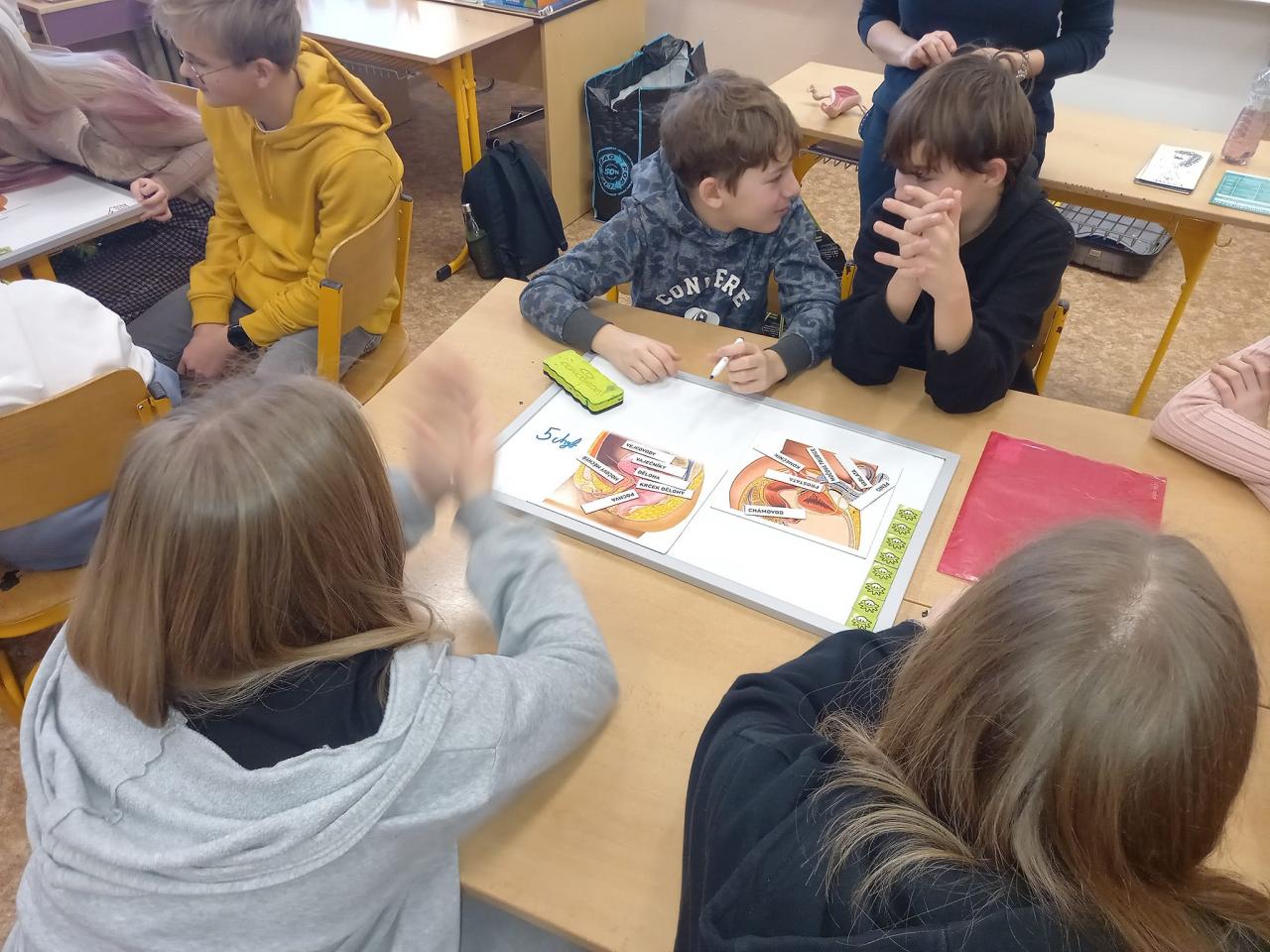 Sedmá třída dnes měla možnost prohloubit si své znalosti o reprodukčním zdraví. Díky vynikající lektorce, paní Milerové z programu HOP (Hravě o prevenci), která vedla naši třídu si děti vyzkoušely různé aktivity, skupinovou práci, ale i otevřenou diskusi. Díky energii, schopnostech paní lektorky a příjemnému prostředí, které dokázala ve třídě vytvořit se děti nebály sdílet své myšlenky a klást otázky všeho druhu.