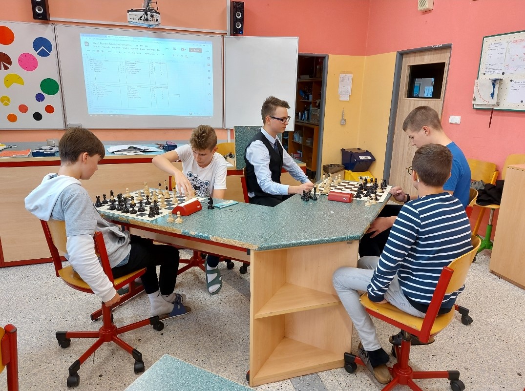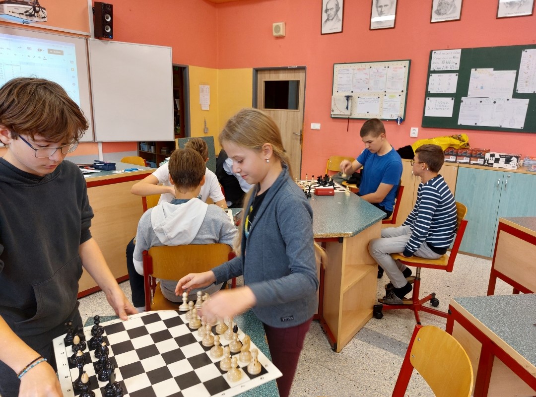 Školní kolo v šachu proběhlo během měsíce října. Soutěže se zúčastnili žáci 6. - 9. ročníku. Byla vysvětlena pravidla hry, která jsou poměrně složitá. Všichni zúčastnění se do soupeření zapojili s patřičným zápalem. Atmosféra byla velmi příjemná a pokud byl někdo poražen, přijal tento výsledek férově. Bylo to moc příjemné setkání a po zhodnocení výsledků jsme vybrali žáky, kteří nás budou 2. 11. 2022 reprezentovat v okresním kole v přeboru v šachu.