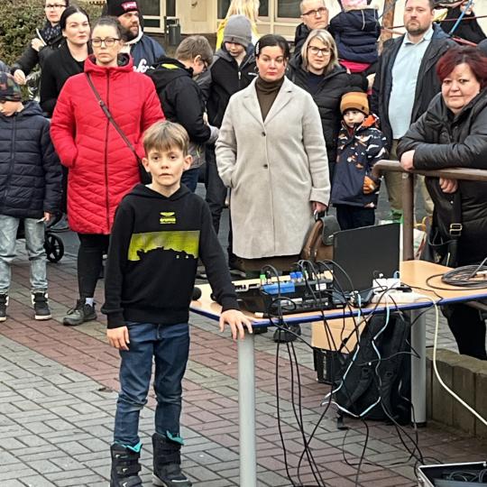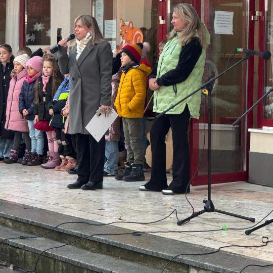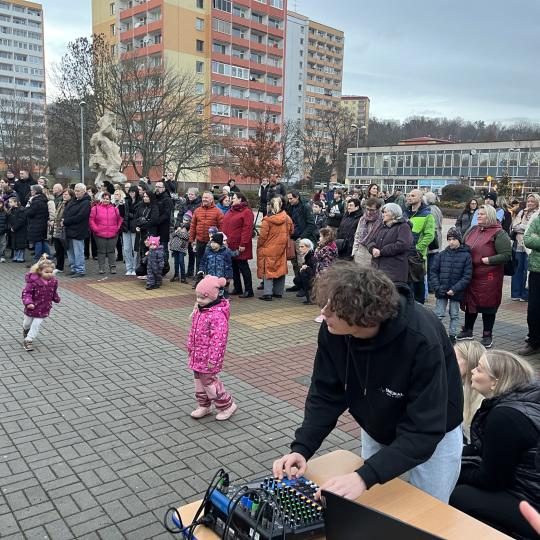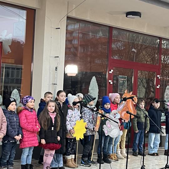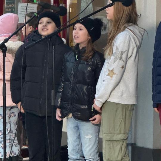 Závěrečnou hudební tečku před oficiálním zahájením obstaraly děti z 5.B s tradiční koledou "Nesem vám noviny".