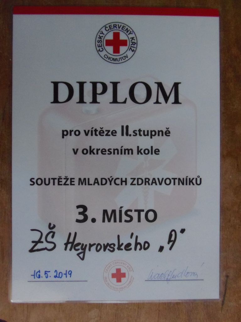 Každoročně se naši žáci účastní Soutěže hlídek mladých zdravotníků pořádané Českým červeným křížem. Tématem a náplní soutěže jsou správné postupy první pomoci.
