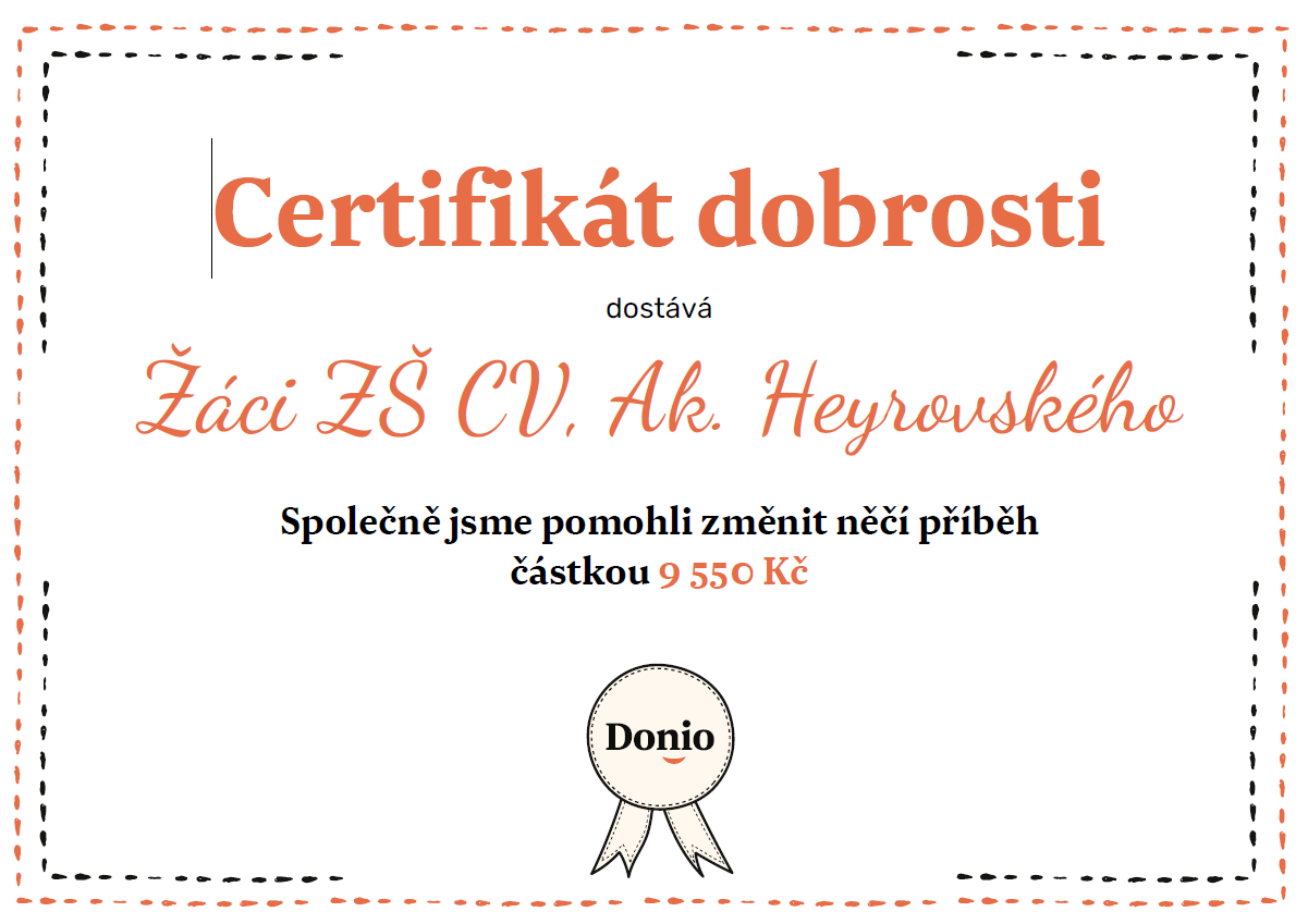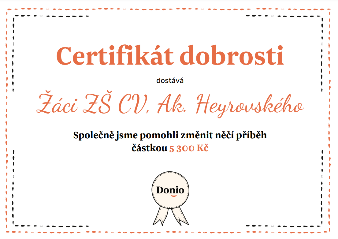 V přiložených souborech naleznete certifikáty dobrosti potvrzující odeslaný příspěvek, a také příběhy lidí, kterým se žáci rozhodli přispět.