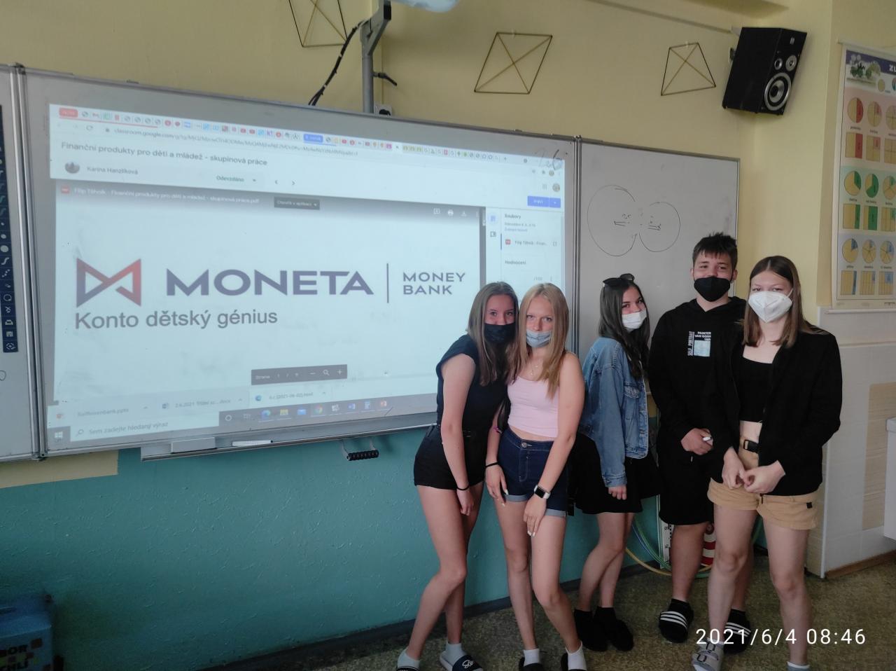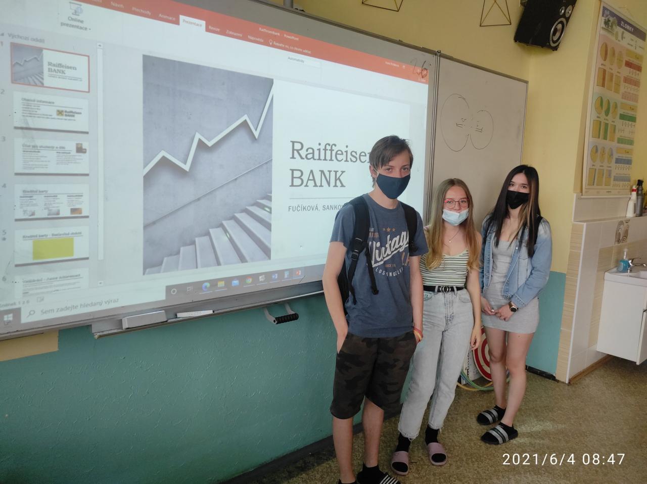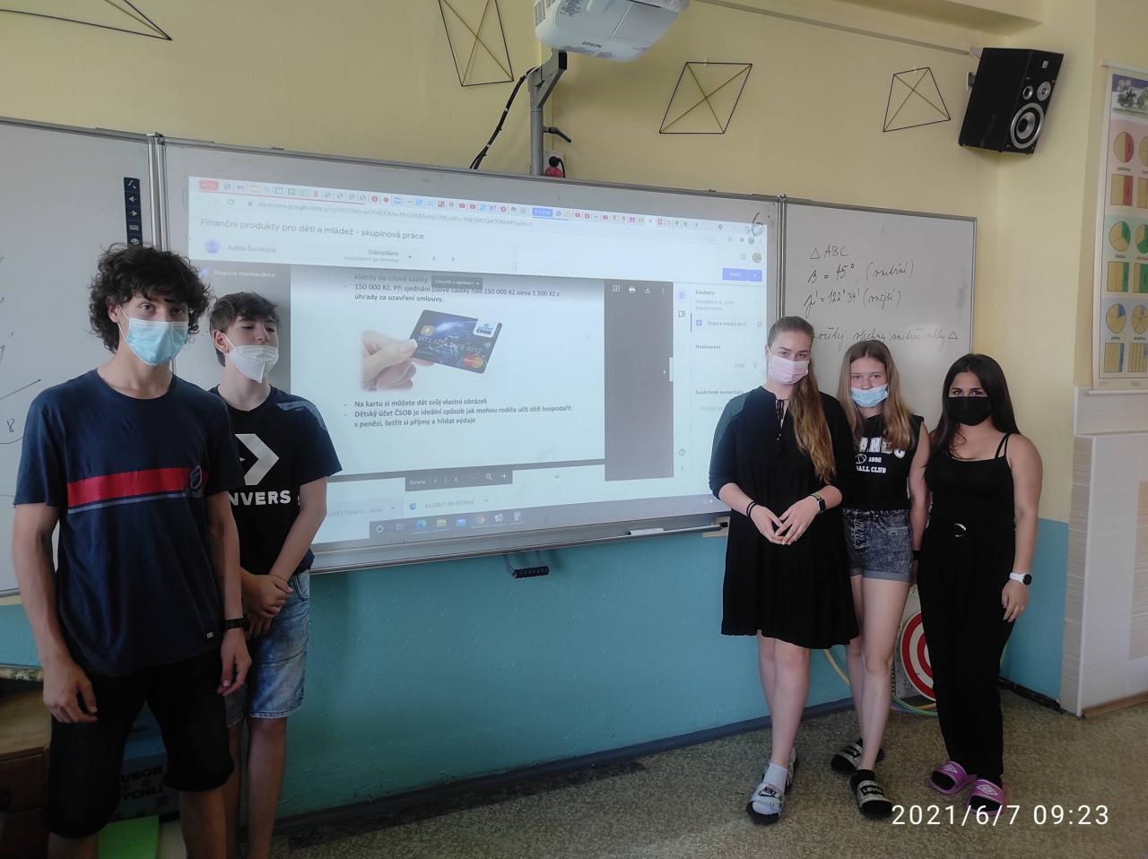 Z deváťáků se v rámci finanční matematiky stali zástupci bank. Byli rozděleni do skupin. Každá skupina měla za úkol navštívit jednu konkrétní banku a získat co nejvíce informací ohledně studenského účtu. Společně zpracovali prezentaci, kterou pak v hodinách matematiky přednesli svým spolužákům. Jako zástupci banky se snažili přesvědčit potenciální klienty (své spolužáky), aby právě u nich si vytvořili svůj účet.