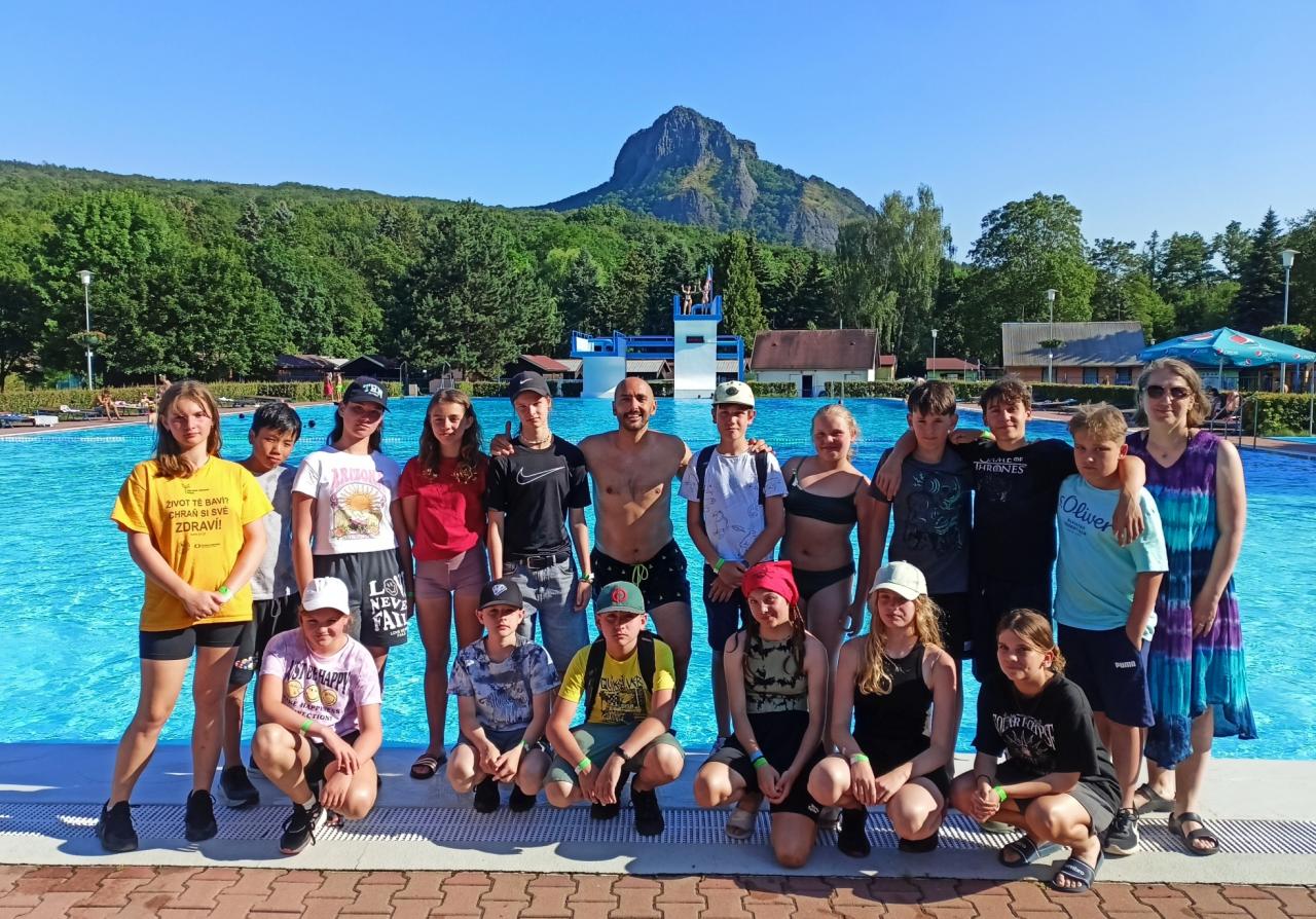 Děti i třídní učitel s asistující paní učitelkou Veselou si užily pobyt zejména při dovádění v bazénu, ale mákly si i při výšlapu na 539m vysokou horu Bořeň. Slunečné počasí krásně podtrhlo celý třídenní výjezd a všichni se vrátili domů opálenější, než odjížděli :)