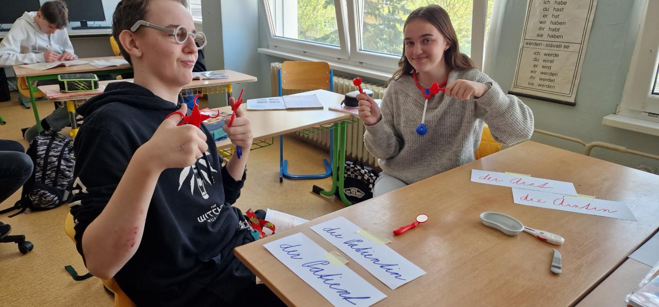 Pro žáky 9.tříd to nyní není žádný problém. V hodině němčiny se pokusili při scénkách "u lékaře" svůj zdravotní problém popsat a vyřešit.