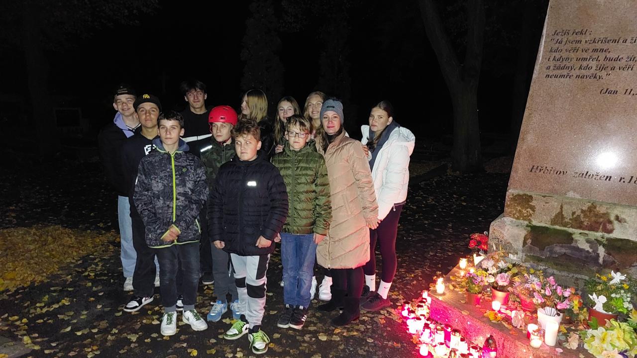 Tento týden je ve znamení Památky zesnulým. V hodinách si povídáme o symbolech a tradicích tohoto svátku, k němuž neodmyslitelně patří i návštěva hřbitova. Velmi mě potěšilo, že děti ve svém volném čase využily nabídky společné procházky, kde jsme sdíleli dušičkovou atmosféru, vnímali tmu a světlo svíček a s úctou zavzpomínali na ty, kteří už mezi námi nejsou.