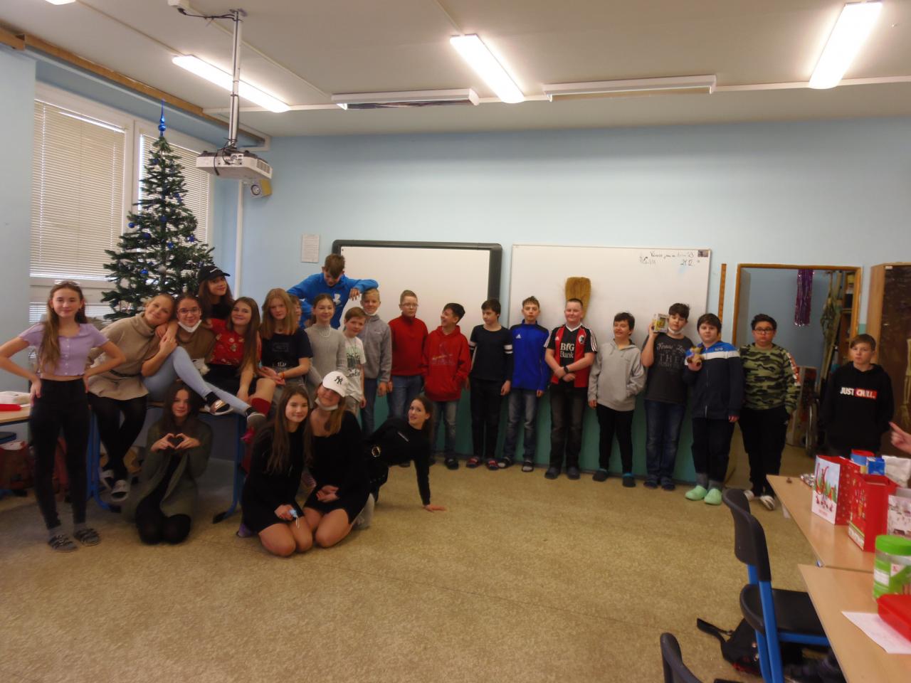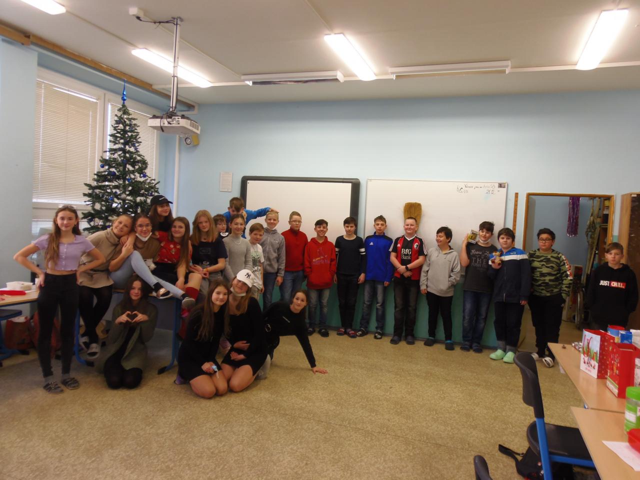 Jak už jsou Vánoce za dveřmi, bývají vánoční besídky. Ta naše byla moc pěkná. Zpívali jsme, zkoušeli vánoční zvyky, povídali jsme si, říkali ostatním milé věci. Ze všeho nejvíc se ale  těšíme, že svým blízkým budeme moci nadělit dárečky, udělat jim radost. Také sami moc rádi dostáváme dárky. Náš vánoční stromeček byl dárky přímo zavalen a radost byla obrovská. Všichni děkujeme svým ježíškům za dárečky, moc si ceníme toho,že na nás myslí. V novém roce přeje 6.a všem, ať je provází radost a láska a prší jedničky.