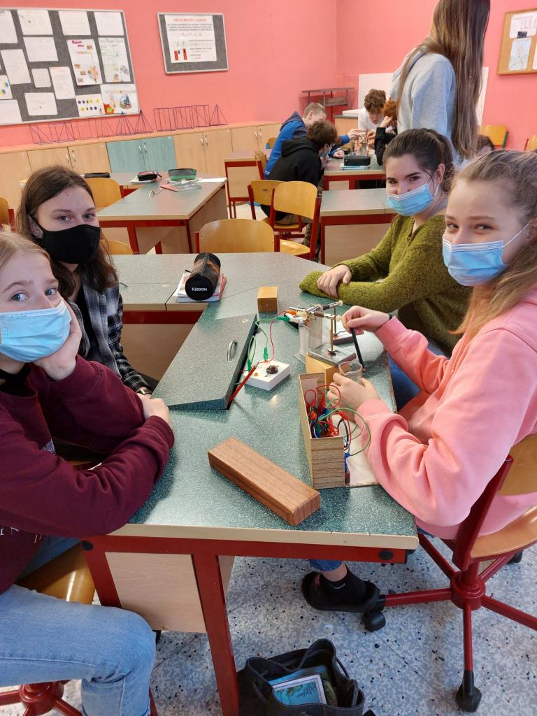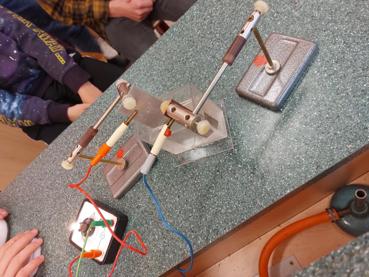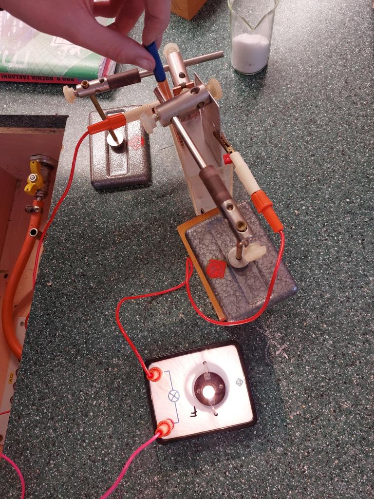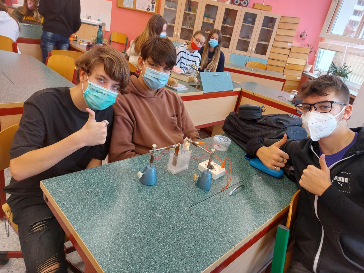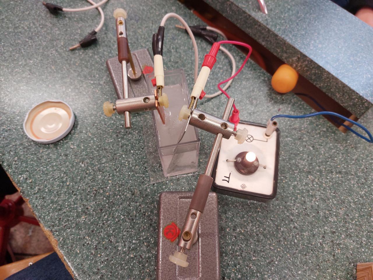 Žáci devátých ročníků zkoumali děj zvaný elektrolýza. Čím více soli do vody nasypali, tím více se jim žárovička rozsvítila. Žáci se přesvědčili, že el, proud prochází i solným roztokem.