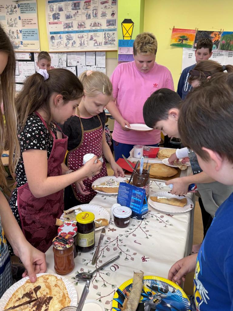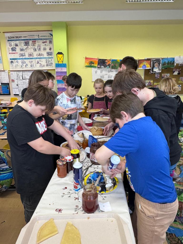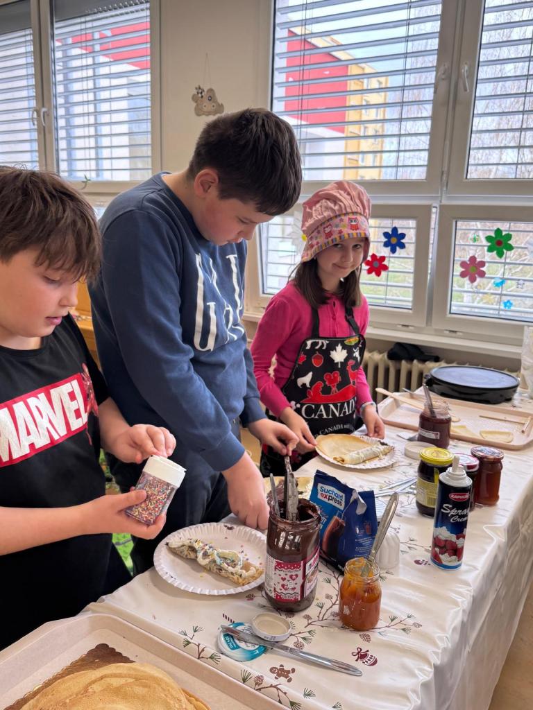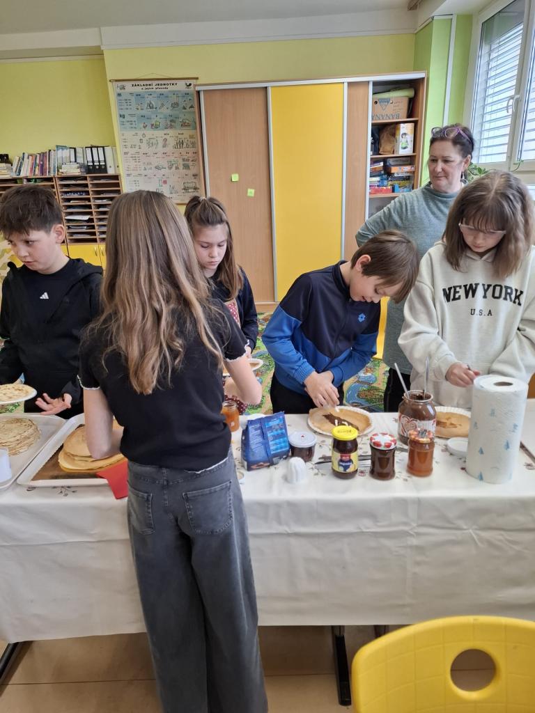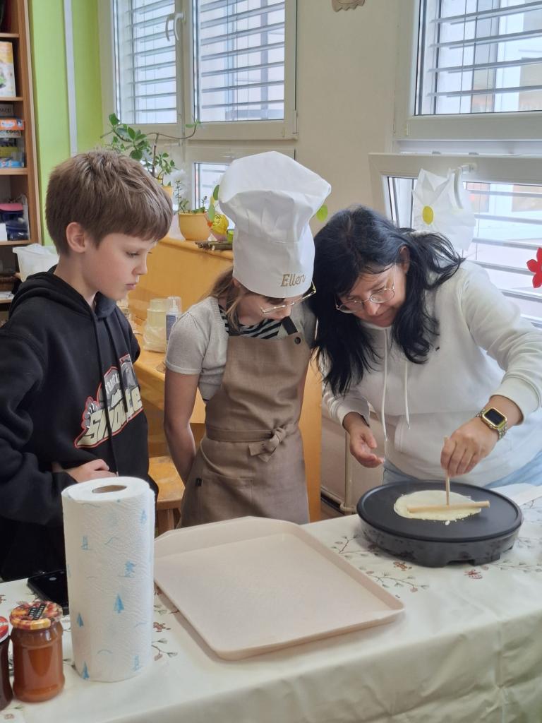Velikonoční atmosféra dorazila i do hodiny angličtiny v pátém ročníku. Žáci se nejprve seznámili s britskou tradicí Pancake Day, známou také jako Shrove Tuesday, a následně si ji vyzkoušeli prakticky. 🥞