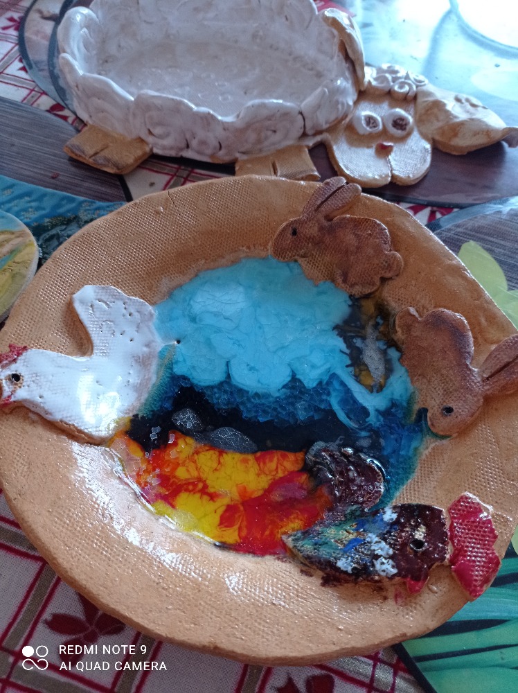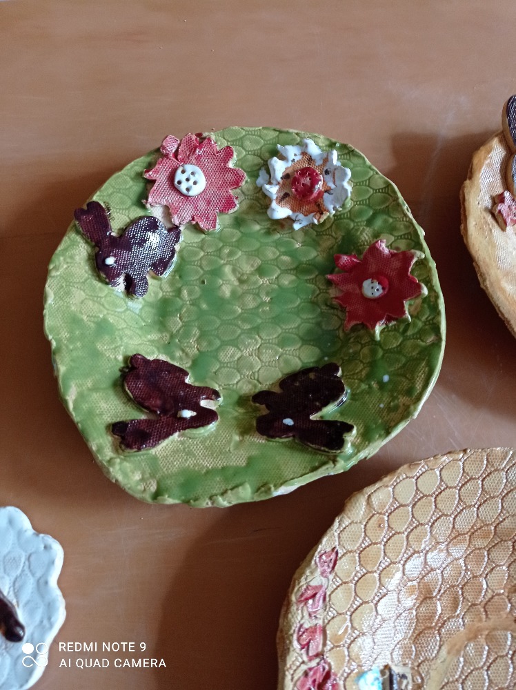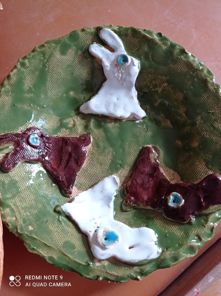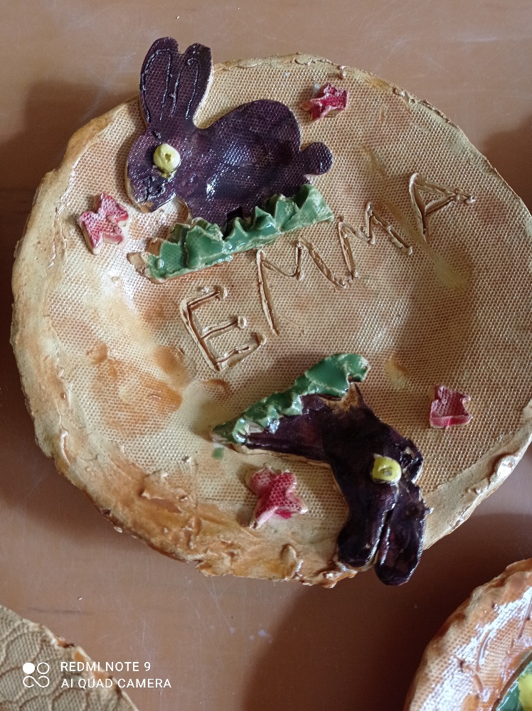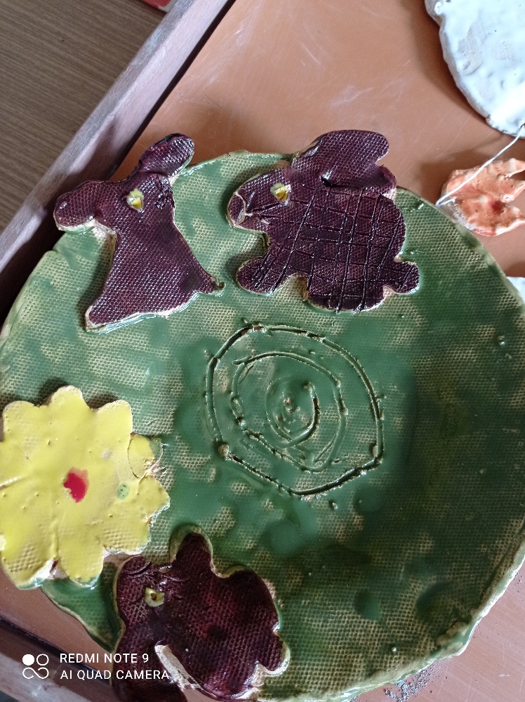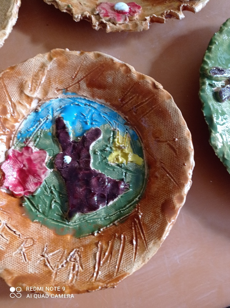 Takové pěkné velikonoční talířky připravili žáci 2.A pro své maminky a tatínky v hodinách výtvarné tvořivosti - keramiky. Určitě udělali svým rodičům velkou radost.