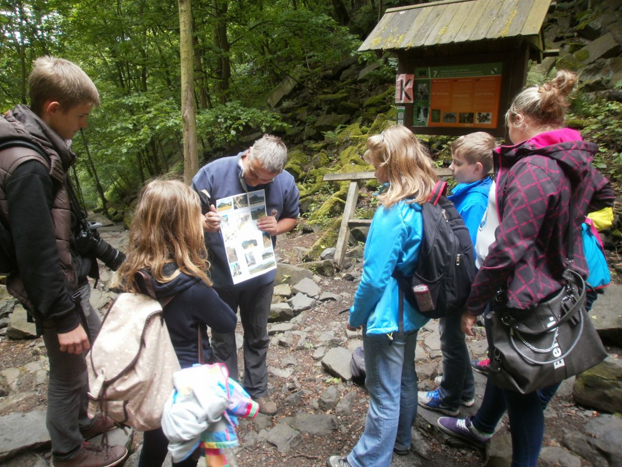Vrkočský vodopád se nám moc líbil, voda padá z 12 metrů a jak jsme tak zkoumali okolí, občas se stalo, že vítr přinesl spršku vody. Na informační tabuli jsme se dočetli, že pod vodopádem žijí dva druhy měkkýšů, zkusili jsme je najít. Hleděli jsme do vody opravdu důkladně, obrátili skoro každý kámen, ale kamomil žádný.