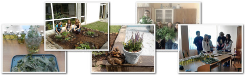 Na hodinách pracovních činností žáci 6. - 9. tříd upravovali zahrádku v atriu naší školy, pěstovali bylinky a zpracovávali úrodu. Zde vidíme žáky IX.A.