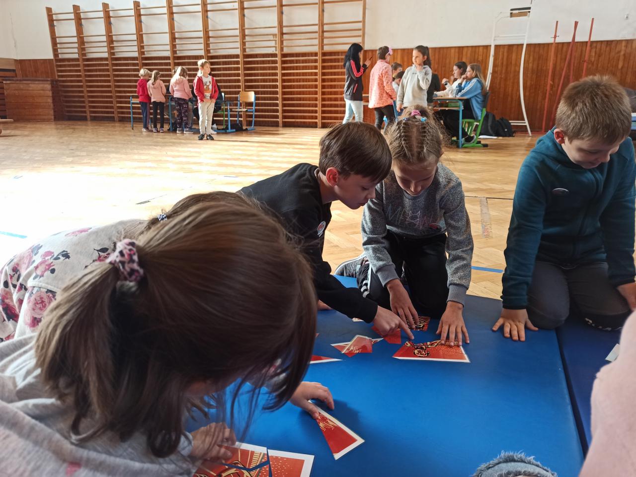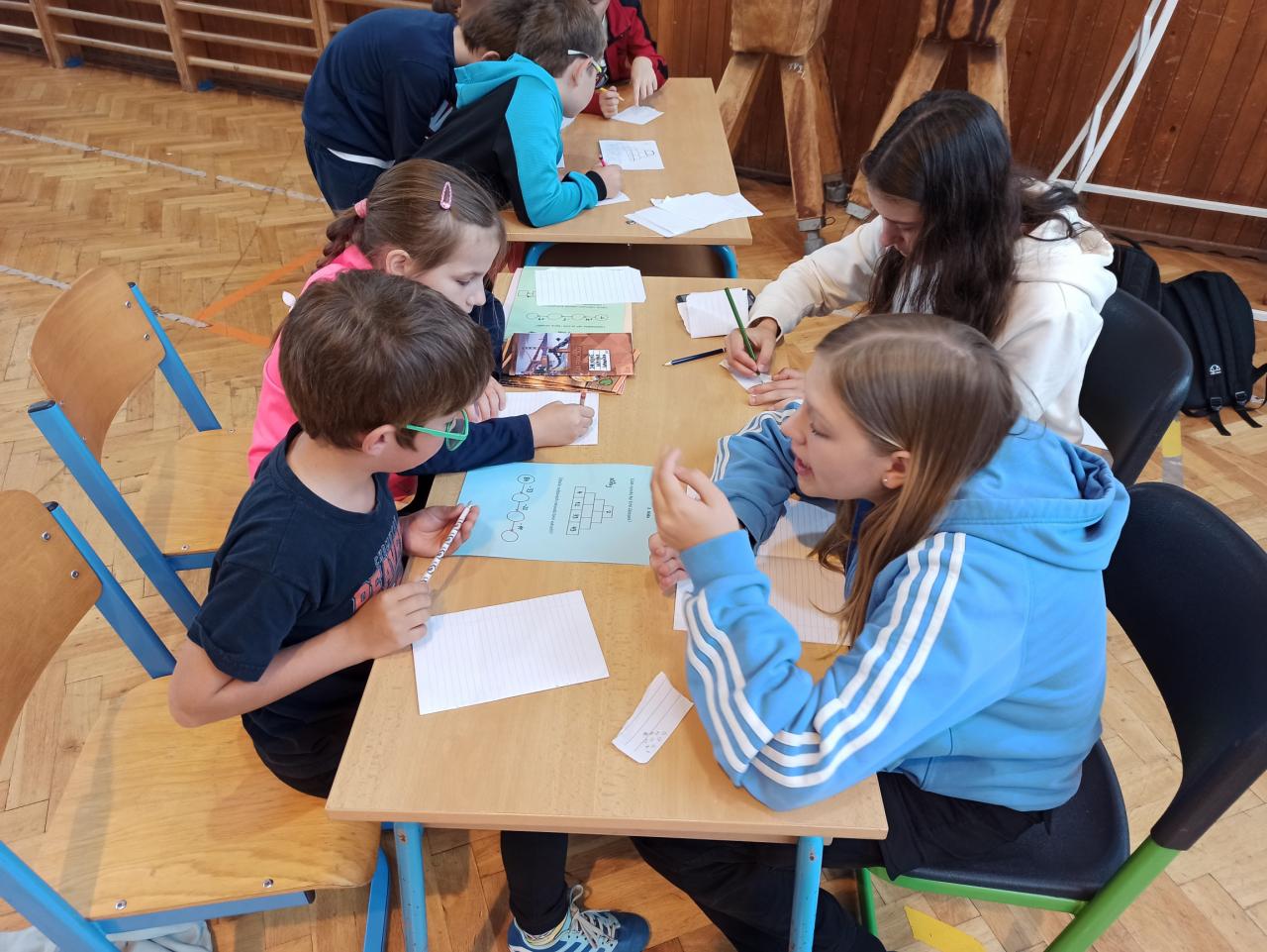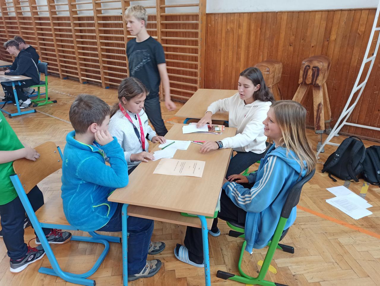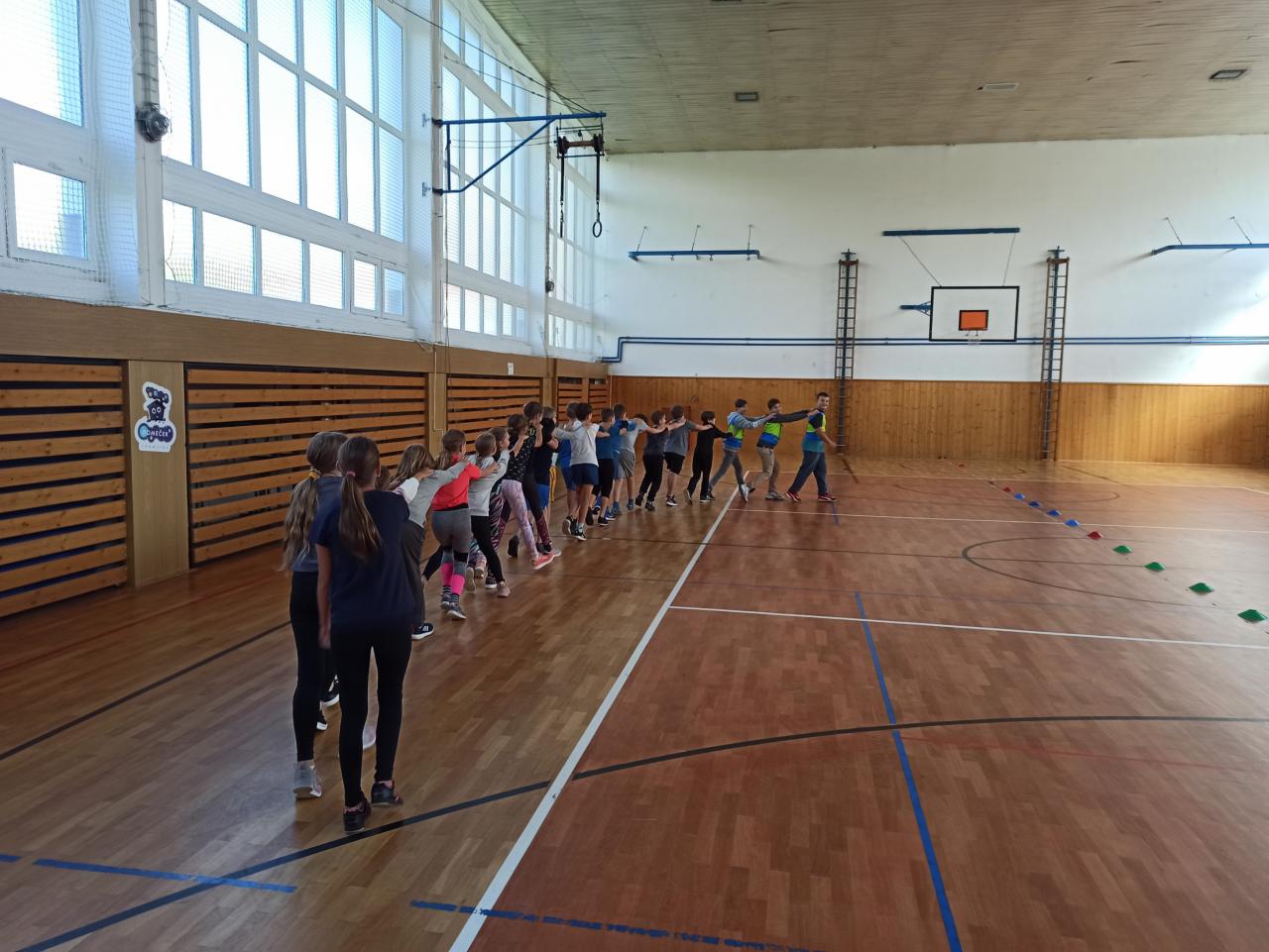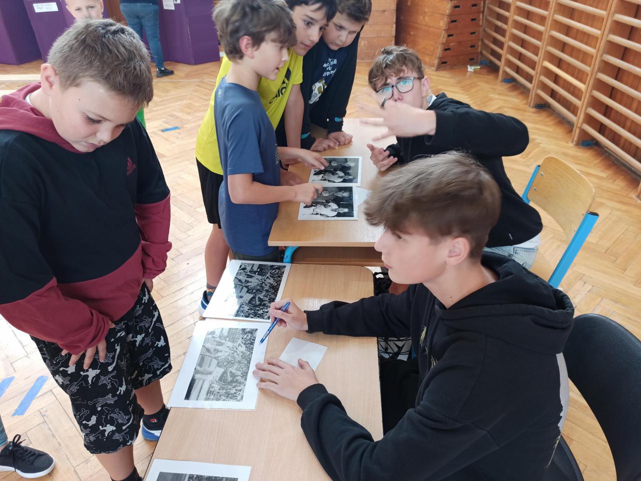Sport jsme okořenili ještě ochutnávkou informací ze života manželů Zátopkových a hrami, které jsme si pro děti připravili v improvizovaném muzeu. To jsme zřídili i za přispění materiálu z Lašského muzea v Kopřivnici, kde je aktuálně věnovaná celá expozice kopřivnickému rodáku Emilovi a jeho ženě Daně. Našimi průvodci Zátopkiádou byli moderátoři ze 6.A, muzejní průvodci ze 7.A a řada rozhodčích z 8.C a 9.B.