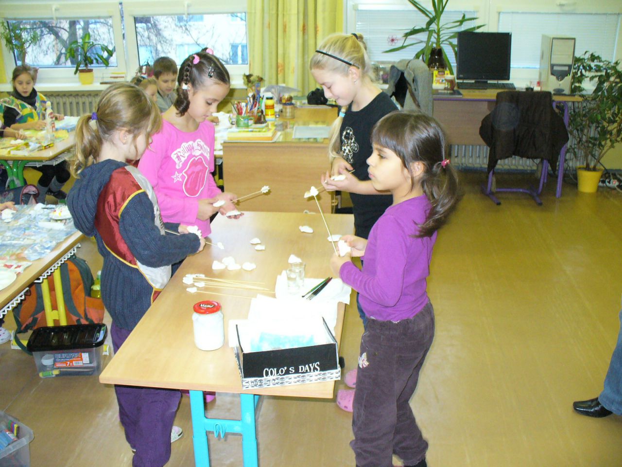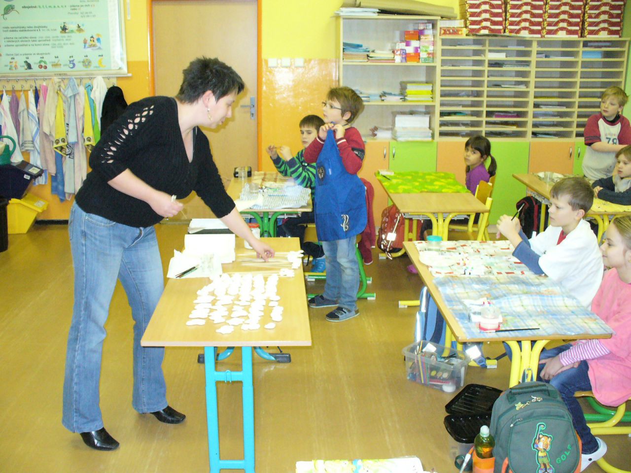 V pondělí ráno přišla společně s dětmi do třídy i maminka Klárky paní Nováková. Protože se blíží Vánoce, připravila pro každého žáčka několik vánočně laděných sádrových odlitků a na dětech bylo, aby si je podle svého ozdobily. Dětem se práce líbila a všem povedla.