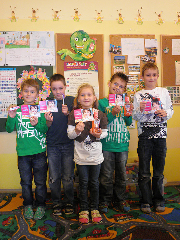 Zdravé zuby - tak se nazývá celostátní projekt pro děti z 1. stupně ZŠ, který má v České republice již více než desetiletou tradici. Každý rok se i některé z našich tříd tohoto projektu zúčastní. O co jde? Na školu počátkem školního roku přicházejí pracovní listy, které děti pod vedením svých třídních učitelů vyplňují. Pracovní listy jsou zpracované pro každý ročník, úměrně k věku dětí. Ty se tak zábavnou formou dozvídají informace z oblasti zubního zdraví. Pokud pracovní list vyplní, dostávají diplom. Tím to ale nekončí. Spolu s listy přicházejí i soutěžní kartičky. Stačí, aby děti zašly ke svému zubaři na preventivní prohlídku, nechaly si kartičku orazítkovat a vyplnily svou adresu a odhad toho, kolik dětí odešle kartičky na soutěžní adresu právě v tomto školním roce. Vyplněnou a orazítkovanou kartičku má soutěžící možnost odeslat sám, odevzdat svému třídnímu učiteli nebo přímo p. učitelce Markové (II.B), která zajišťuje koordinaci toho projektu na naší škole. A pak už nezbývá než čekat, zda se na děti usměje štěstí. Letos se usmálo hned na 5 žáků ze třídy 2.B. Stali se výherci drobných dárků, ale i kuponu se slevou na zájezd s cestovní kanceláří. Lukáši Faltejskovi, Danielu Strejcovi, Violce Jánoškové, Danielu Kohoutovi a Petru Hodináři blahopřejeme! Kéž v příštím roce může být výherců z naší školy ještě více! Stačí tak málo - jen zajít k zubaři :)
