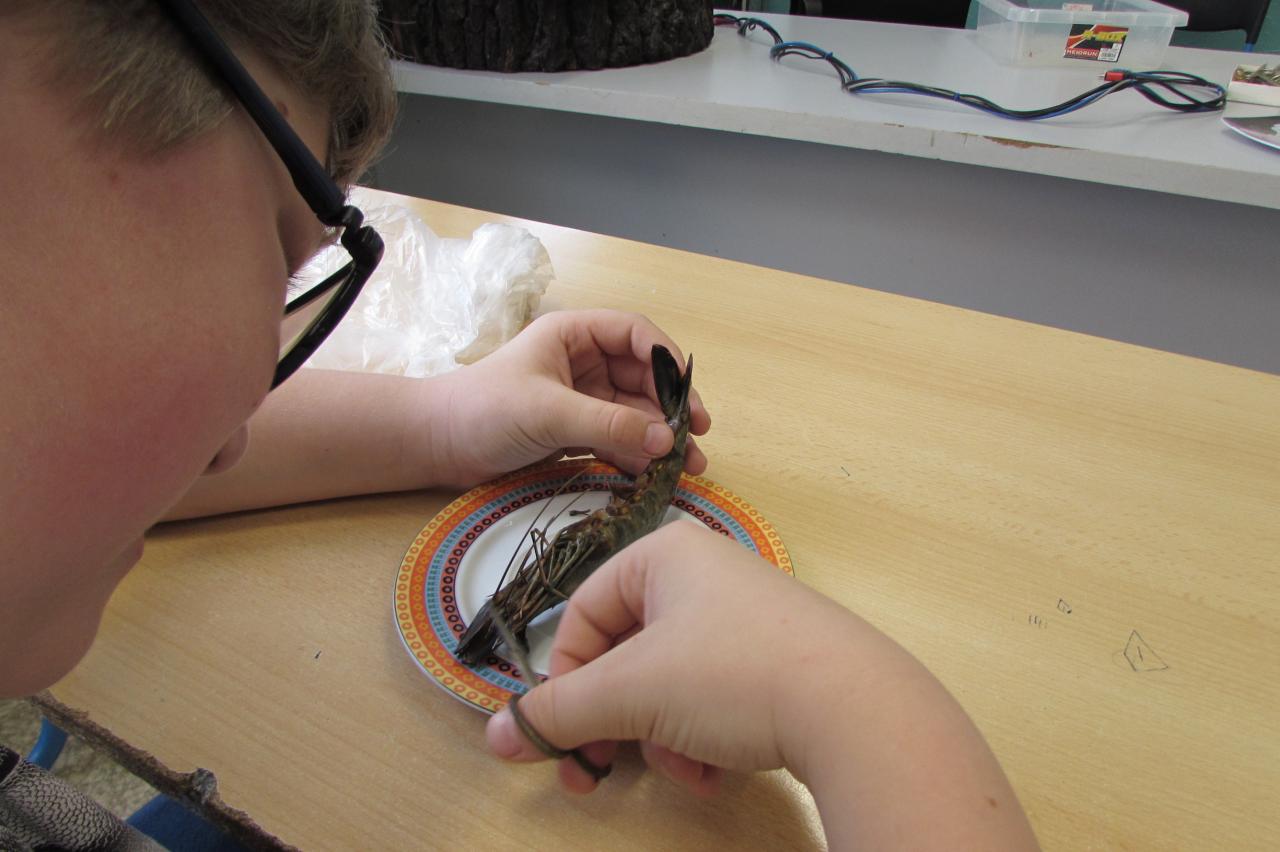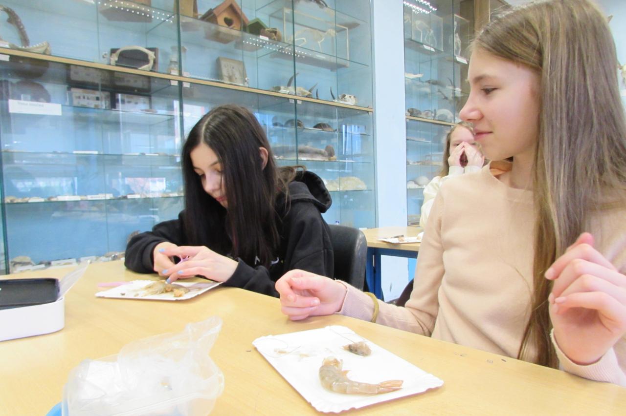 V hodině biologie jsme se tentokrát vydali do světa bezobratlých živočichů. Tématem laboratorní práce byla stavba těla krevety, která žákům posloužila jako ideální příklad členovců adaptovaných na život ve vodě.