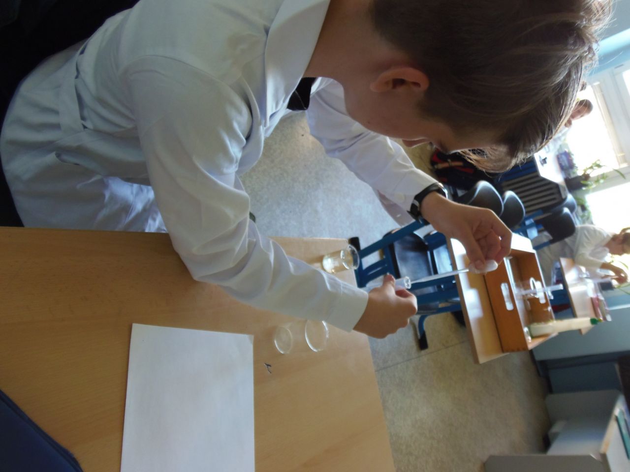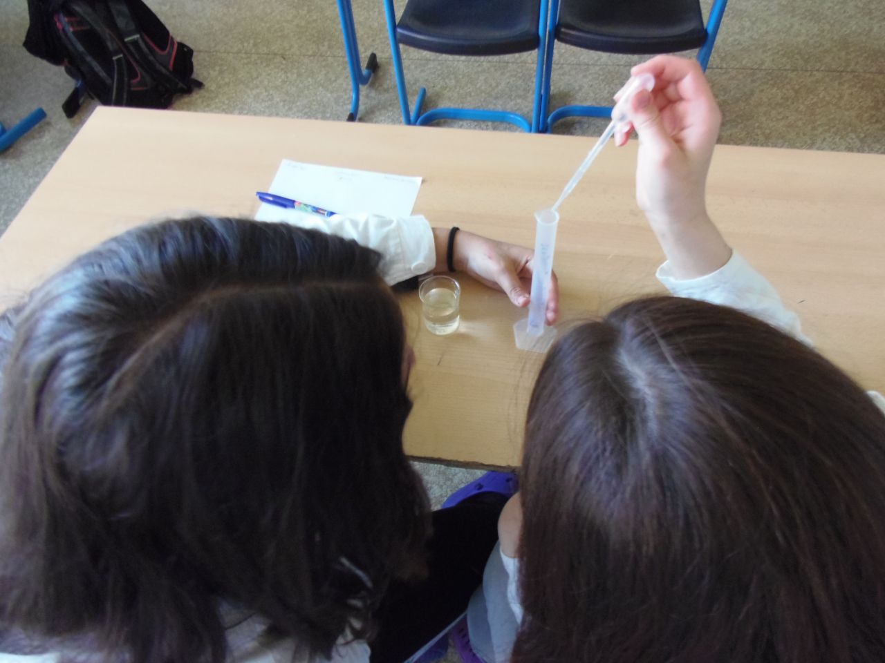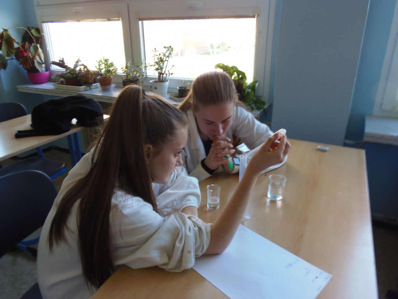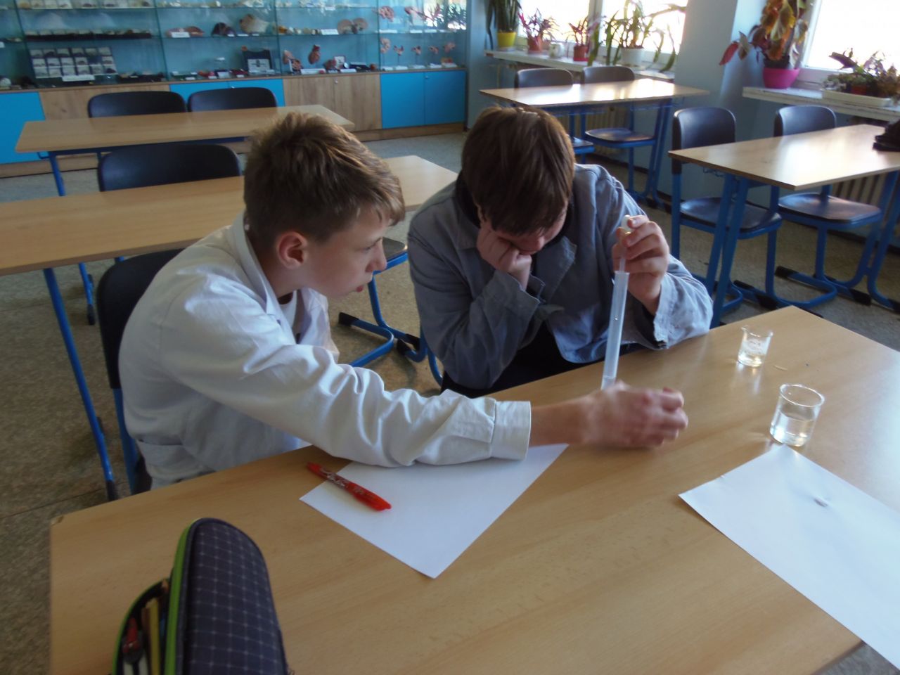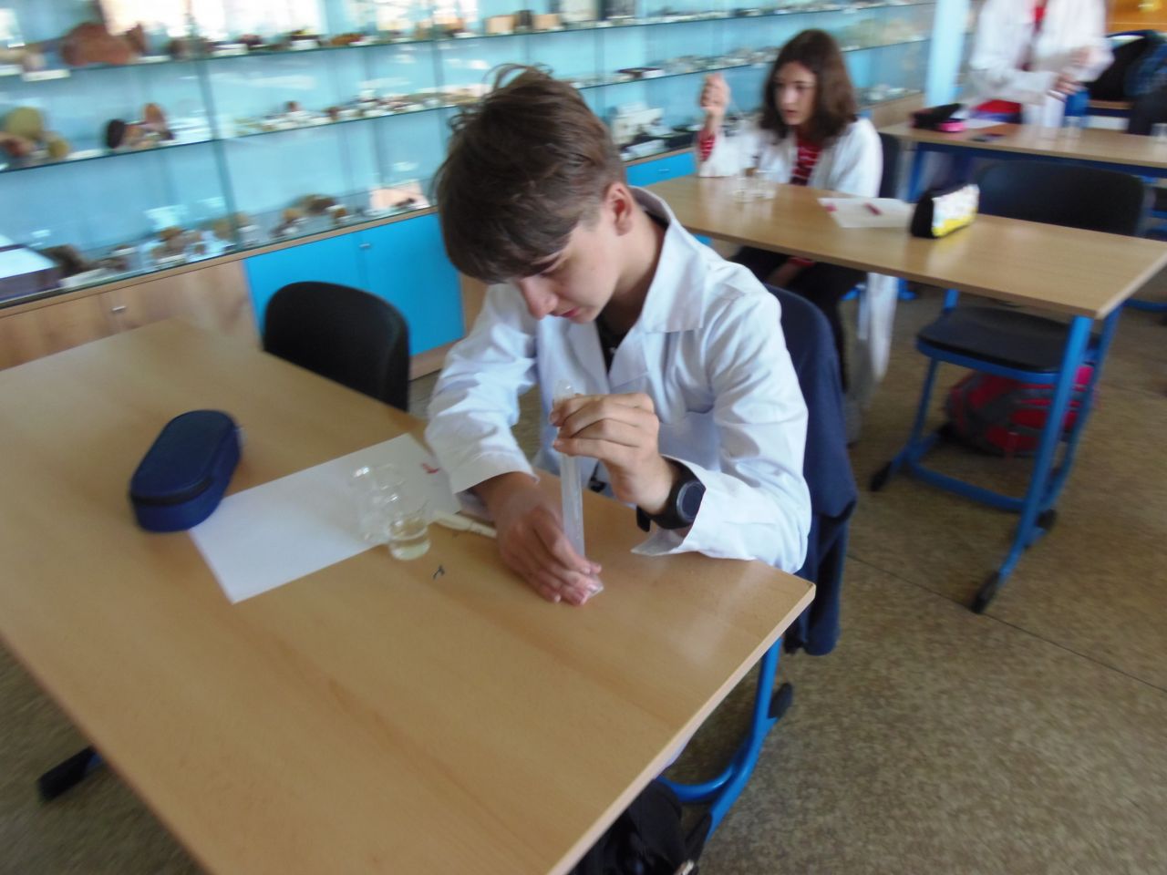 Před rozšířením arsenálu laboratorních prací z chemie bylo potřeba novou laboratorní práci vyzkoušet. Je to práce k tématu Voda a než se do ní pustíme v běžných hodinách, žáci ze semináře Ekologie zkoušeli, jestli vše běží, jak je v plánu a nenarazíme na nějaké zádrhele. Zjistili jsme, že je všechno v naprostém pořádku a práce připravena pro žáky příštího osmého ročníku.